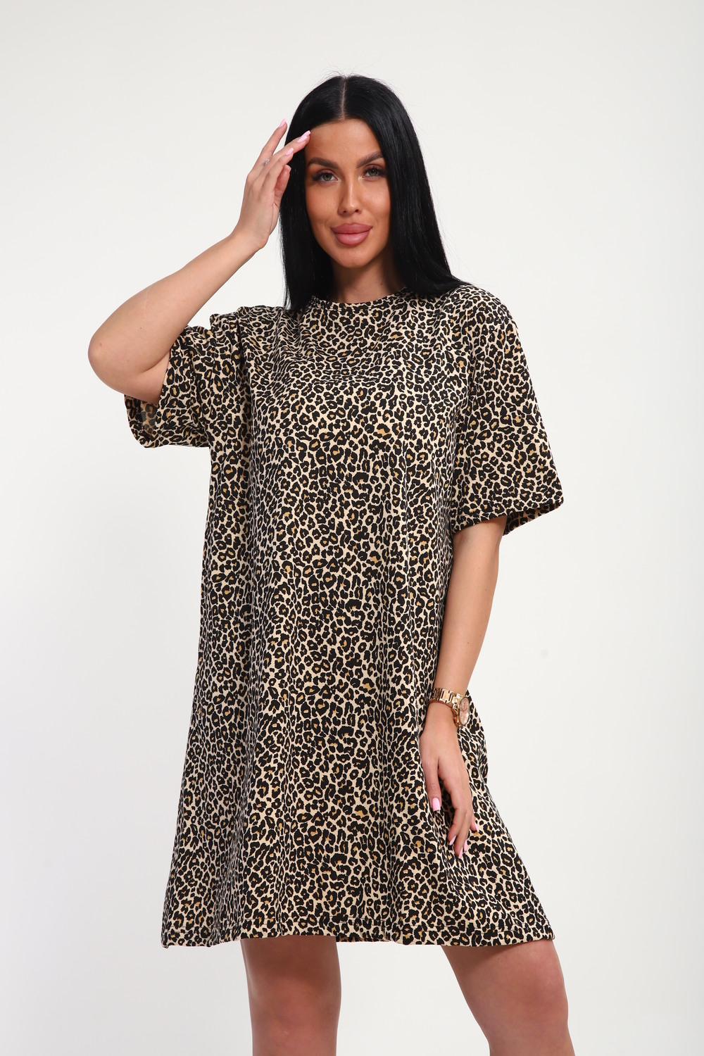 Туника в форме удлиненной футболки леопардовая сделает домашний образ игривым и дерзким. Прямой свободный силуэт скроет недостатки и покажет достоинства фигуры, а дышащий нежный хлопок - идеальный для домашней одежды и пижамы. В наших туниках можно расслабляться, делать работу по дому, отдыхать, играть с детьми - все что угодно! Они прекрасно подойдут в повседневной жизни в качестве футболки, на джинсы или леггинсы. Порадуйте себя и своих любимых разнообразием в уютной домашней одежде от бренда Веста.