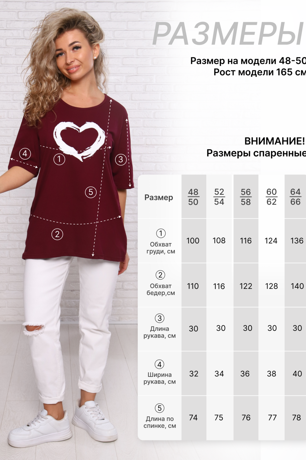 Футболка женская удлиненная с карманами и рисунком в виде сердца. Футболка с широким втачным рукавом, что делает его свободным и футболка не сковывает движений. Карманы на футболке очень практично и удобно, особенно, если носить ее с бриджима, леггинсами и велосипедками. Футболка свободного кроя из натурального дышащего хлопка - прекрасный базовый вариант одежды на любой сезон. Подходит в качестве домашней одежды, одежды на работу и для прогулок.