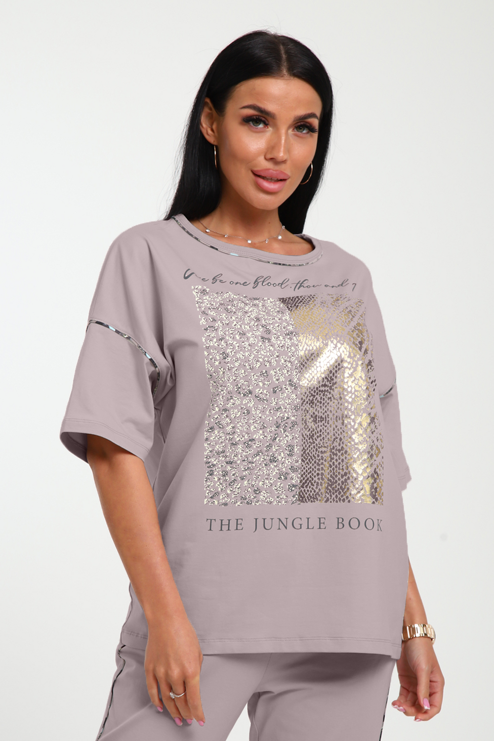 Трикотажная футболка премиум качества с модным принтом от NINEL. Модель выполнена из высококачественного кулирного волокна с лайкрой.