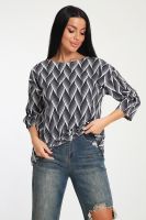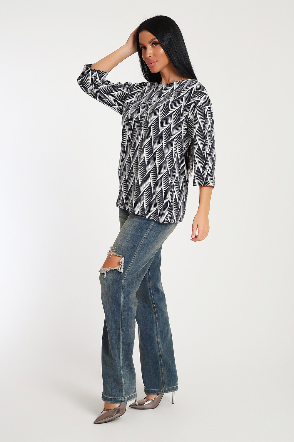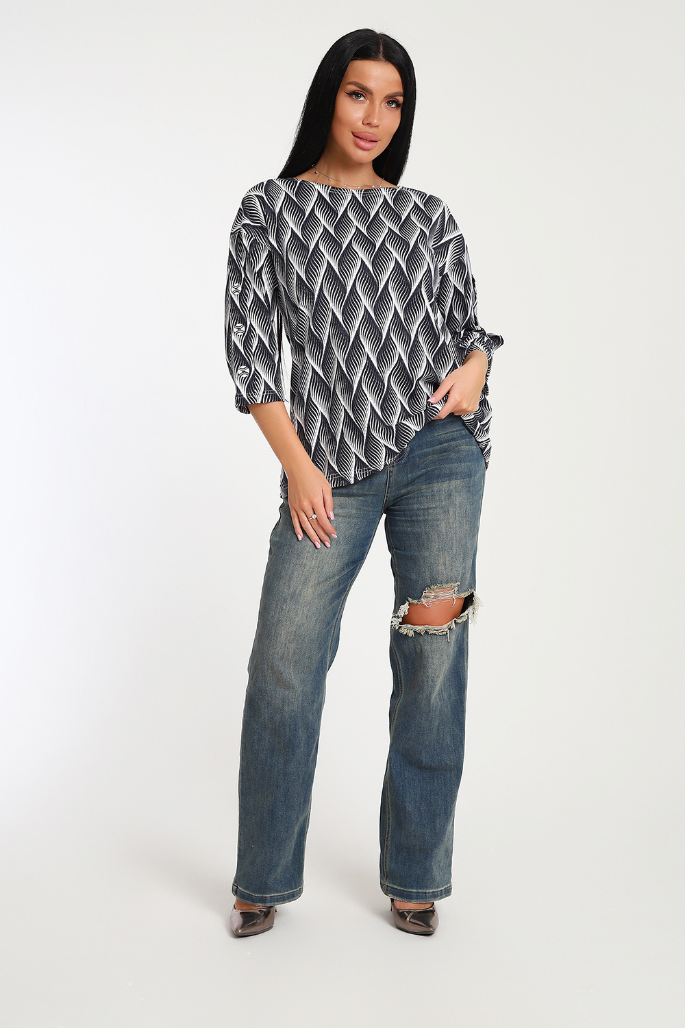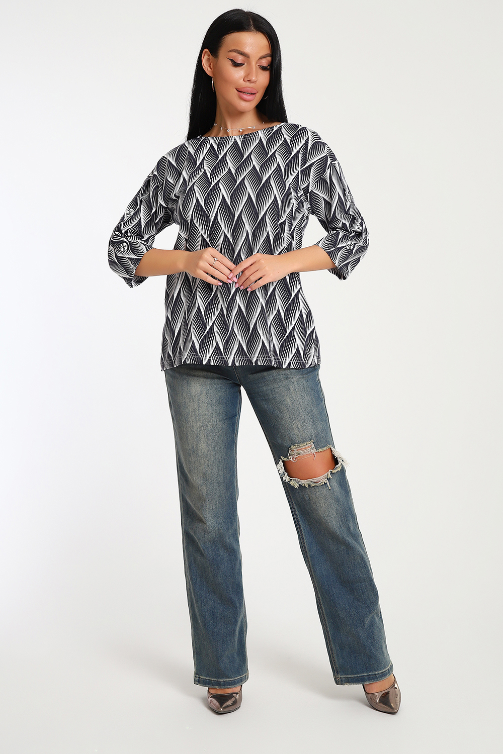 Футболка женская свободного прилегания с рукавами 3/4, украшенная пуговицами на рукавах.