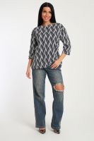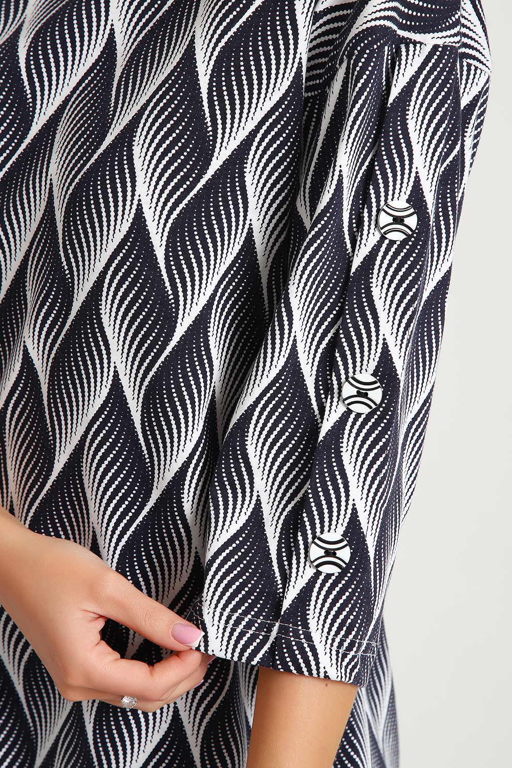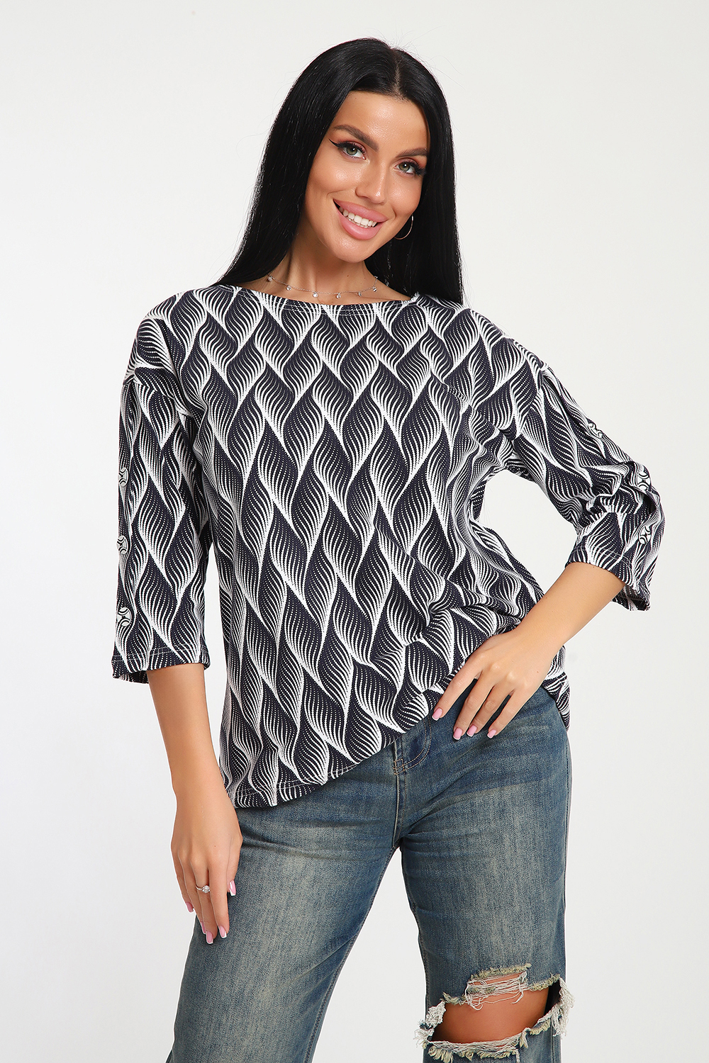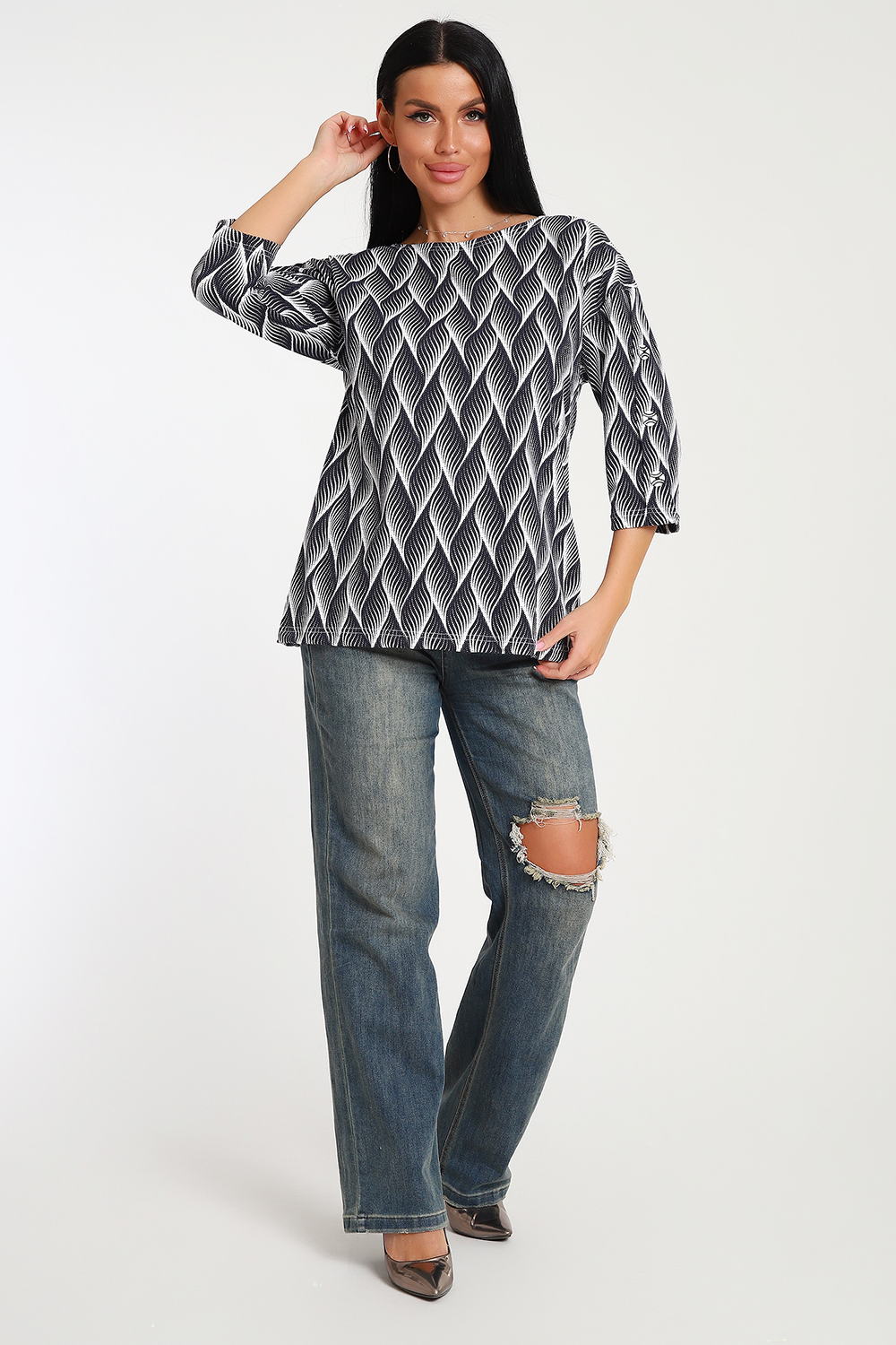 Футболка женская свободного прилегания с рукавами 3/4, украшенная пуговицами на рукавах.