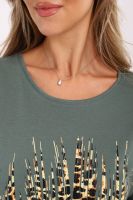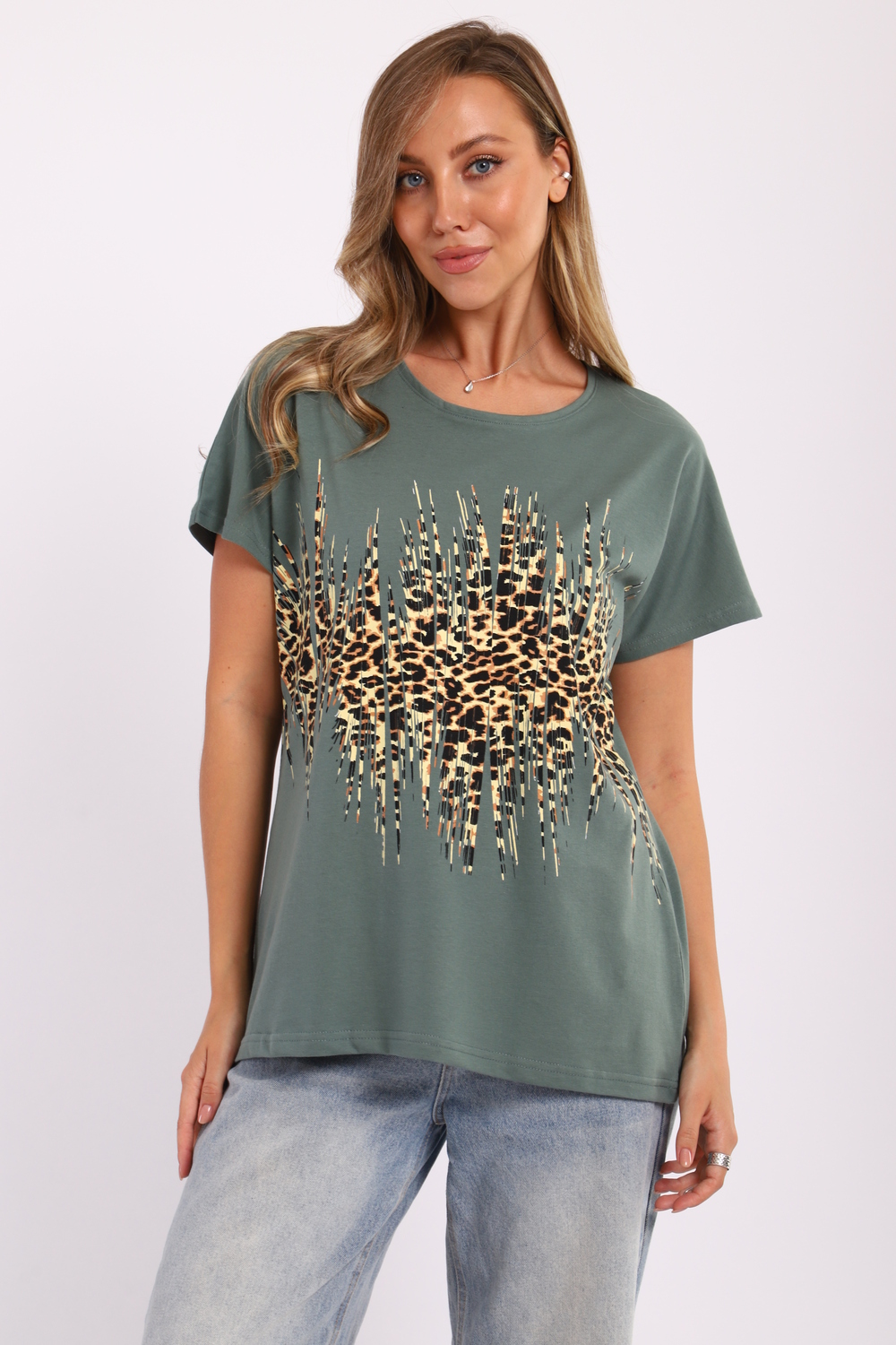 Представляем стильную и комфортную футболку, идеально подходящую для домашнего ношения или летних выходов. Изготовленная из высококачественного хлопка, эта нарядная модель обеспечивает невероятное ощущение комфорта и свободы движений. Футболка выполнена в нежных оттенках, что придает ей свежесть и гармонию. Удлиненная конструкция подчеркивает силуэт, создавая стильный образ. Дизайн дополнен ярким принтом, который включает цветочные элементы и графические акценты. Это придает изделию оригинальность и делает его отличным выбором для модных образов. Свободный крой позволяет сочетать эту модель с различными вещами: от джинсов до легких шорт. Короткие рукава обеспечивают дополнительную вентиляцию, что делает ее идеальной для жарких летних дней. Текстура материала приятна на ощупь и обеспечивает комфорт в носке на протяжении всего дня. Это изделие отличается высоким качеством пошива, что гарантирует долговечность и устойчивость к износу. Премиум материал сохраняет свои свойства даже после множества стирок, оставаясь ярким и привлекательным. Эта футболка — отличный выбор как для повседневной носки, так и для создания более нарядных образов с минимальными усилиями. Благодаря своим визуальным характеристикам она станет замечательным дополнением вашего гардероба и позволит вам выглядеть стильно в любой ситуации. Носите с удовольствием!