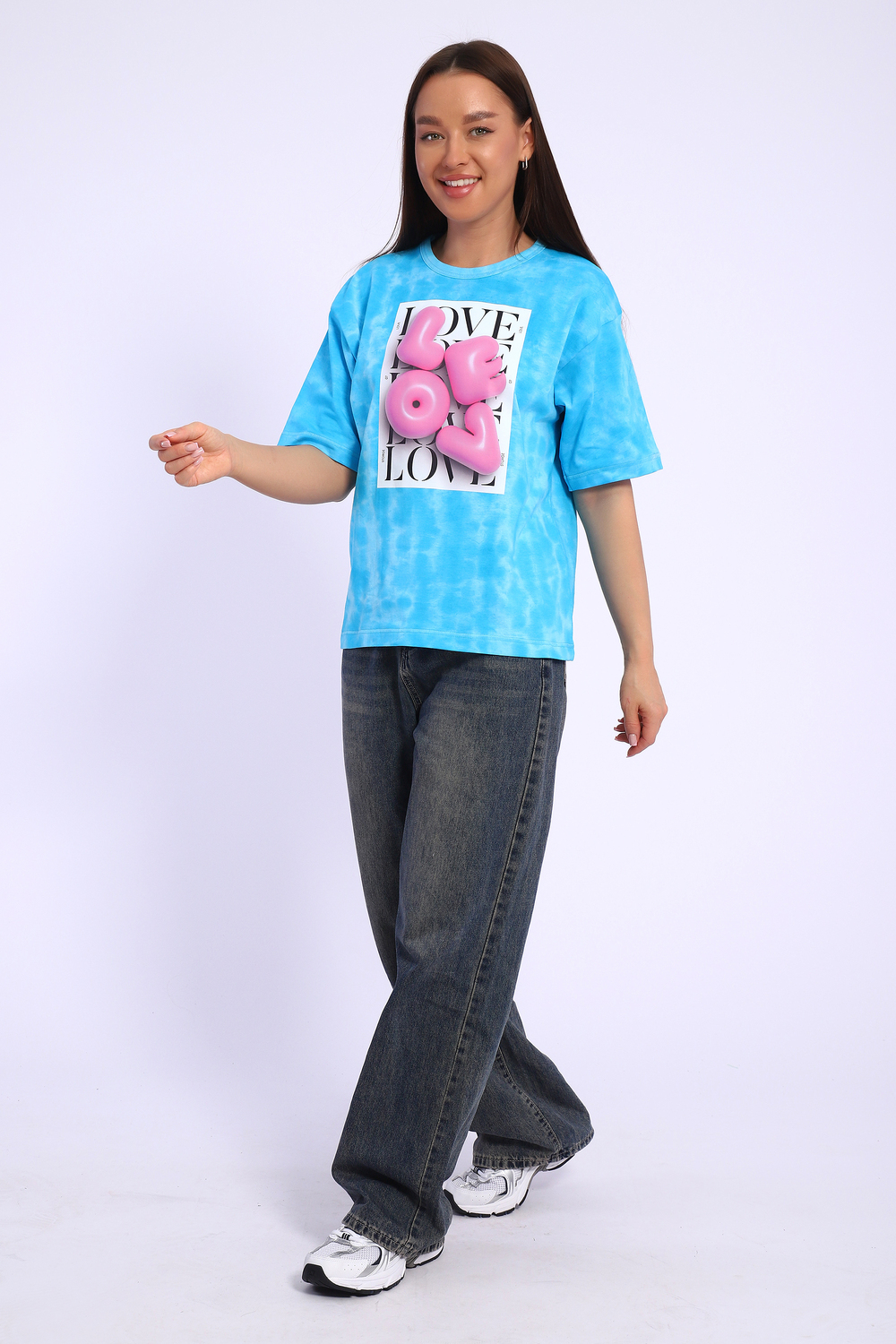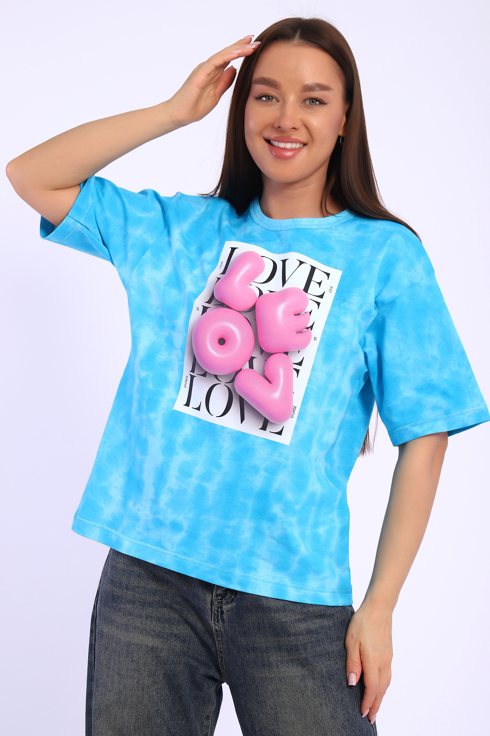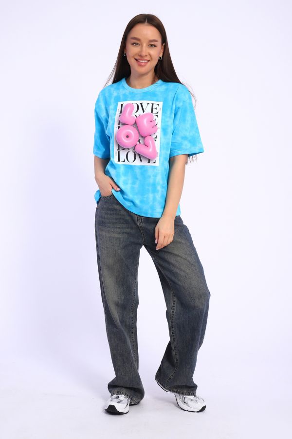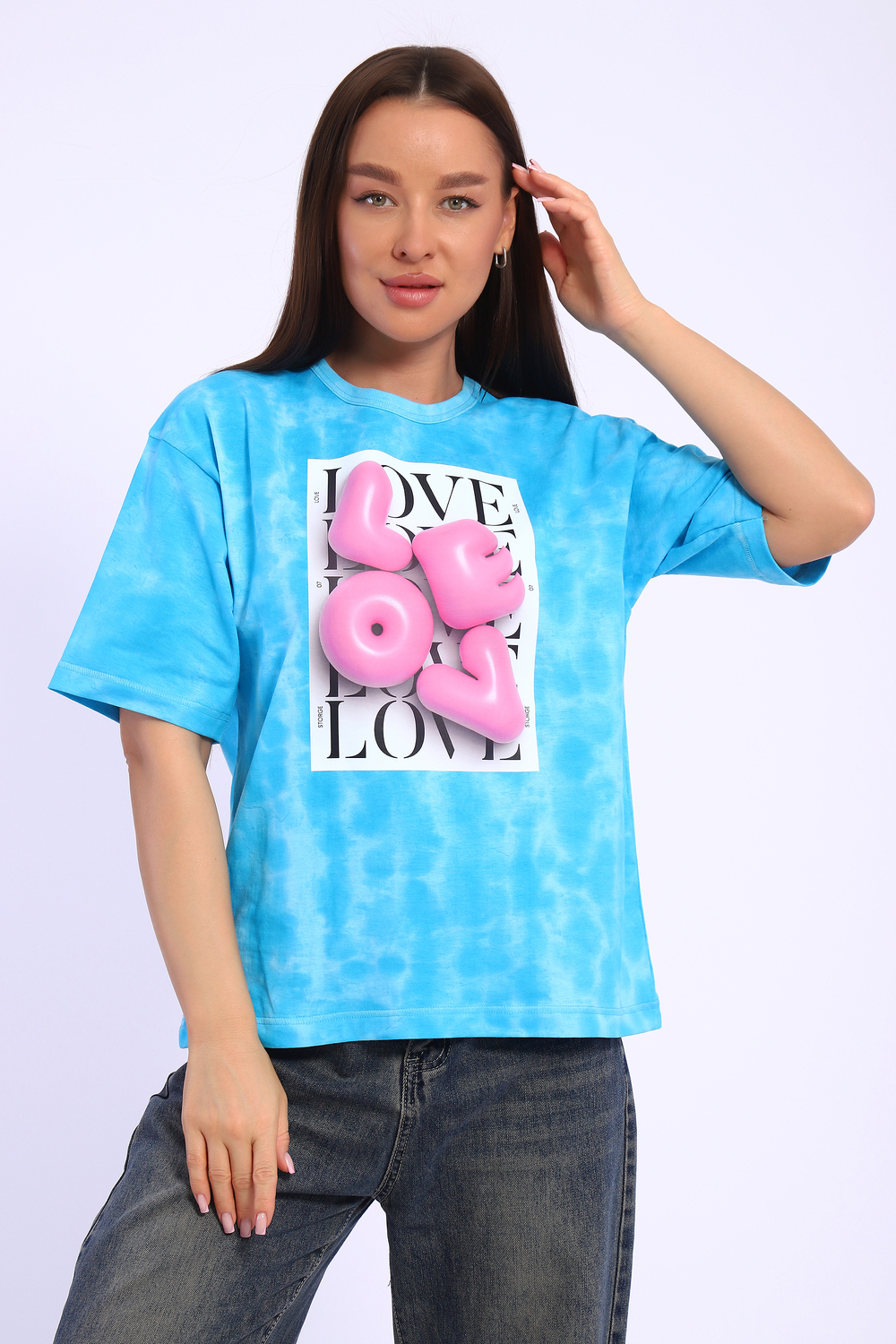 Футболка оверсайз свободного кроя это базовая вещь в любом гардеробе. Объемный принт цифровой печати смотрится классно и стильно. В такой футболке вы точно останетесь не замеченными! Ткань батик с разводами смотрится очень стильно, Этим летом вы будите в центре внимания.