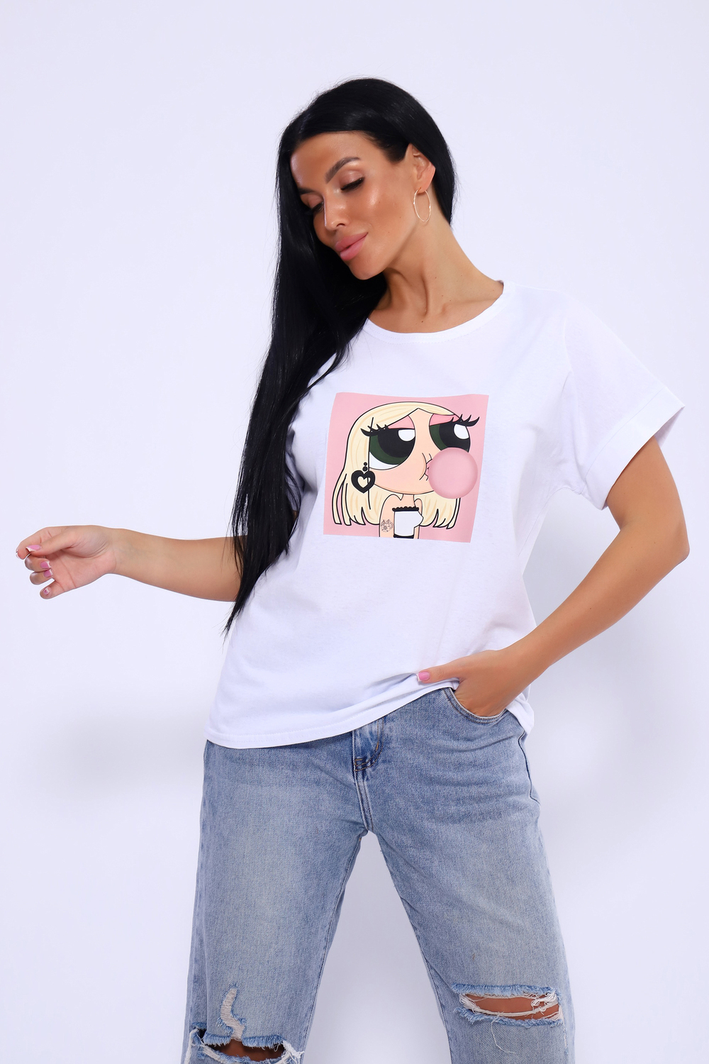 Футболка женская с ярким молодёжным принтом из мягкого, гипоаллергенного хлопкового трикотажа. Модель слегка приталенного силуэта, округлая горловина, спущенная пройма на манжете. Футболка - это универсальный элемент гардероба, который можно носить как на работу, так и на прогулку, в спортзал и просто дома. Комфортная, приятная к телу футболка подойдёт девушке любой фигуры и возраста.