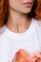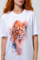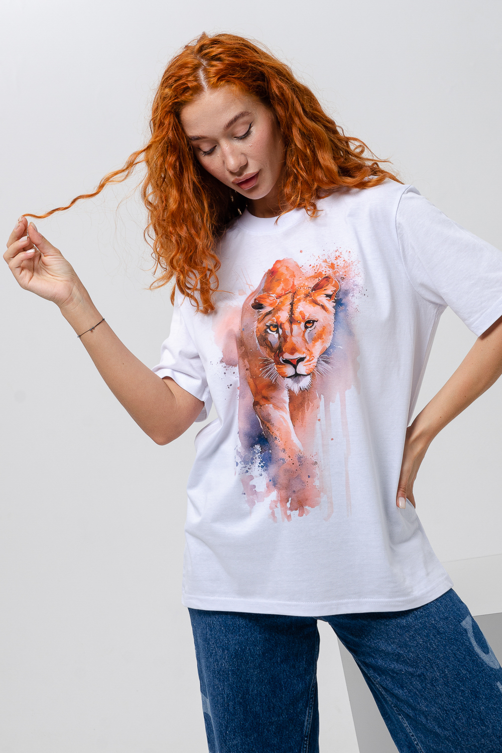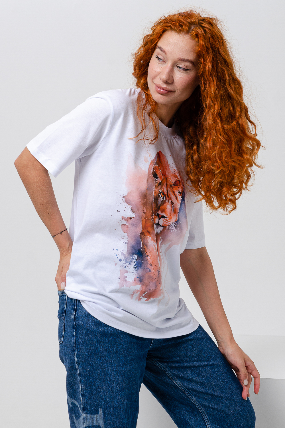 Футболка прямая, свободная, средней длины, с округлой горловиной. Рукав короткий. Горловина обработана эластичной обтачкой.