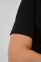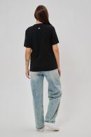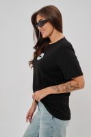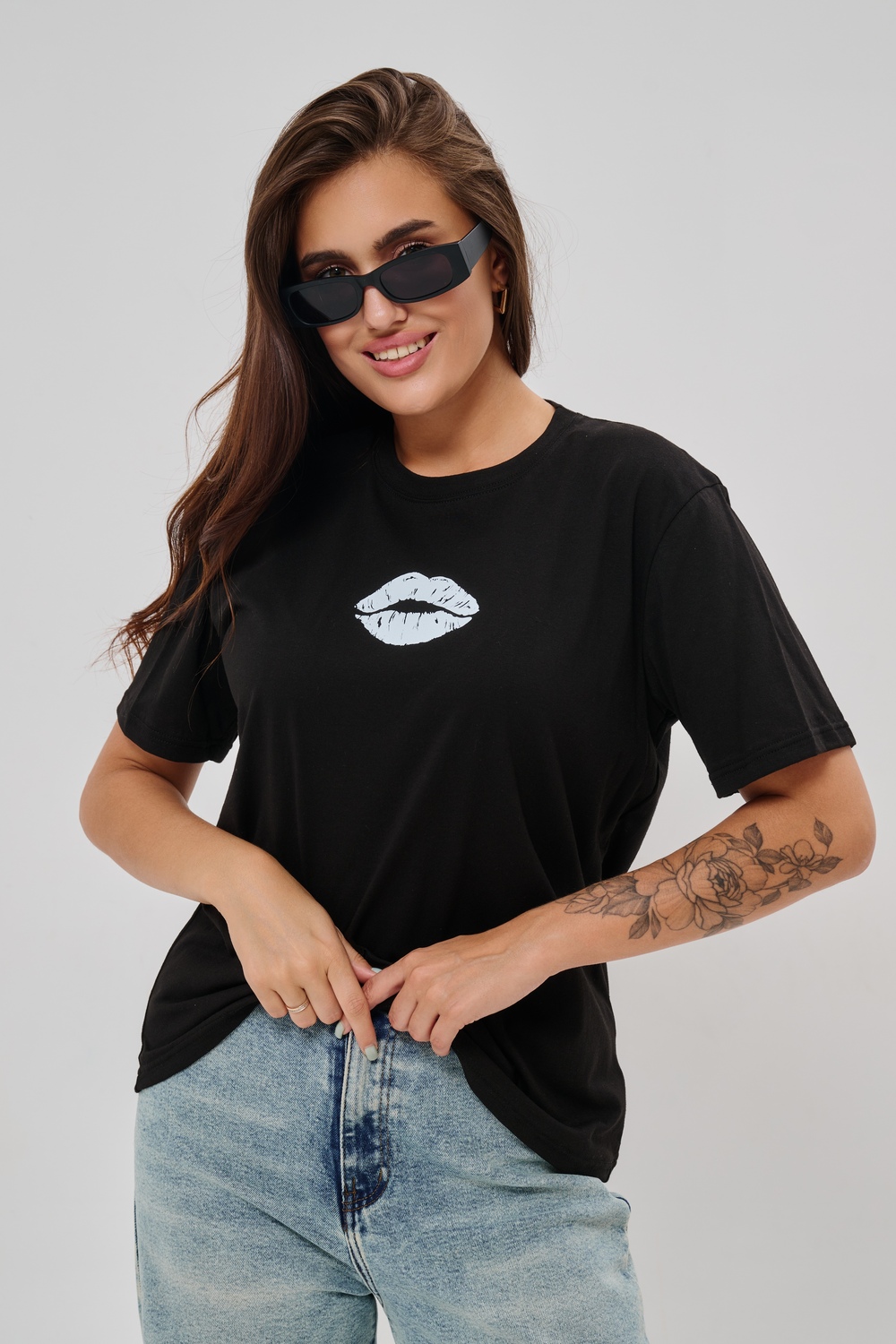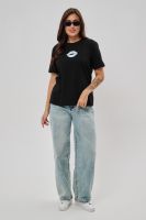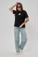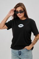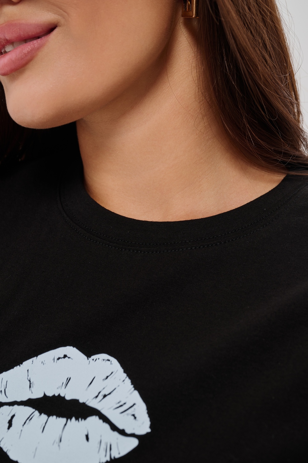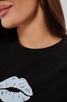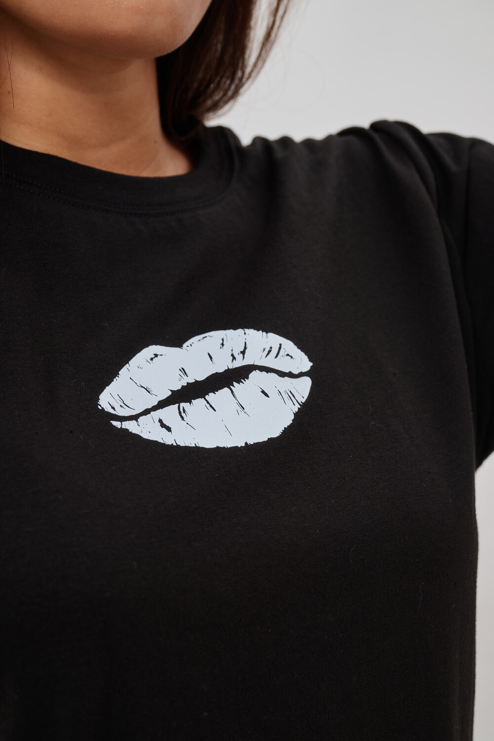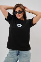 Женская футболка приталенного силуэта, выполненная из мягкой и приятной к телу кулирки. Модель отличается лаконичностью и удобством благодаря укороченным рукавам и аккуратному круглому вырезу горловины. Изюминкой изделия является минималистичный принт в виде груб, выполненные в чёрном оттенке. Футболка универсальна, легко сочетается с различными элементами гардероба и станет отличным выбором для повседневной носки, подчёркивая женственную фигуру и индивидуальность своей обладательницы.