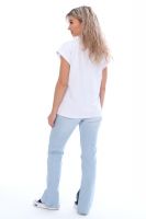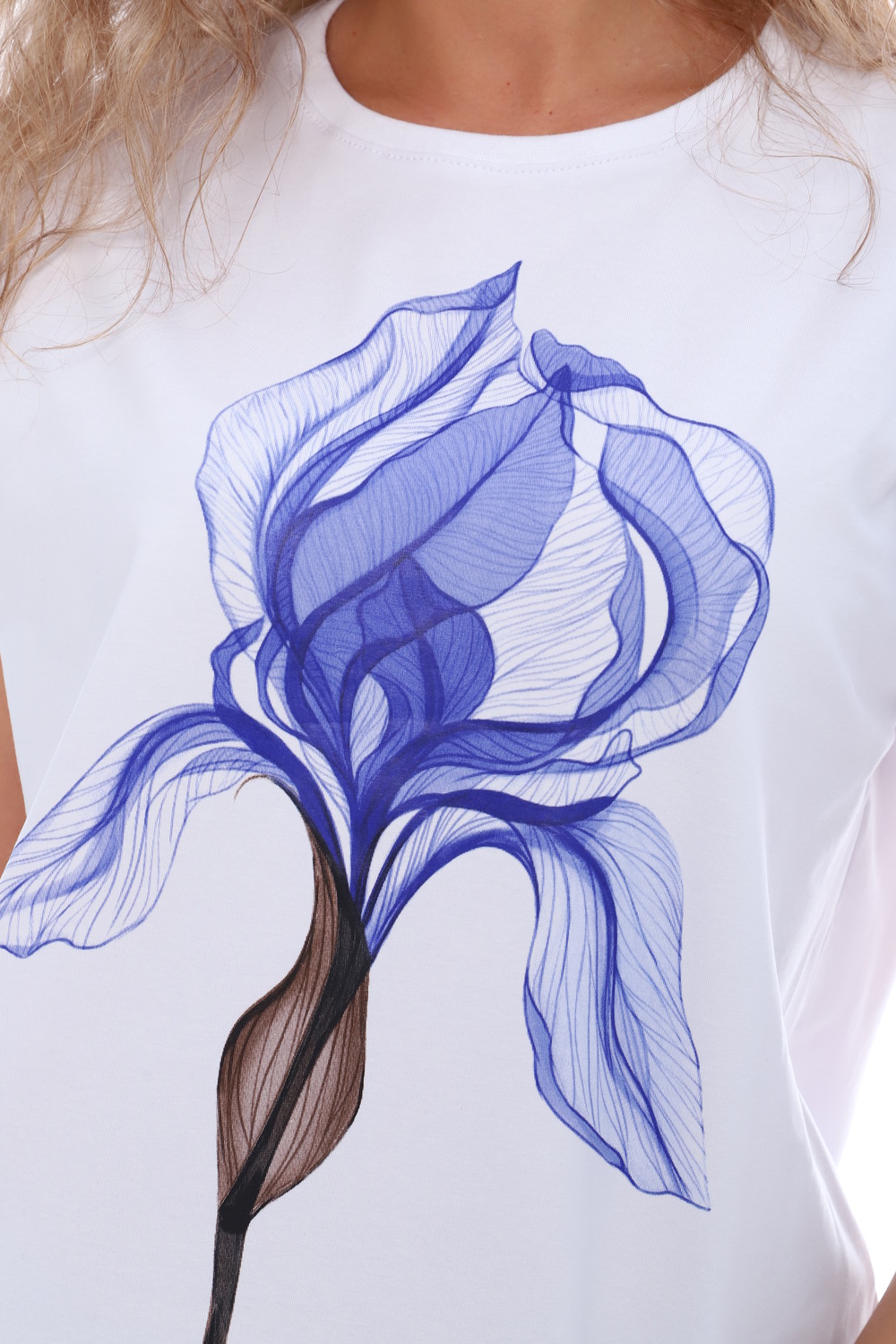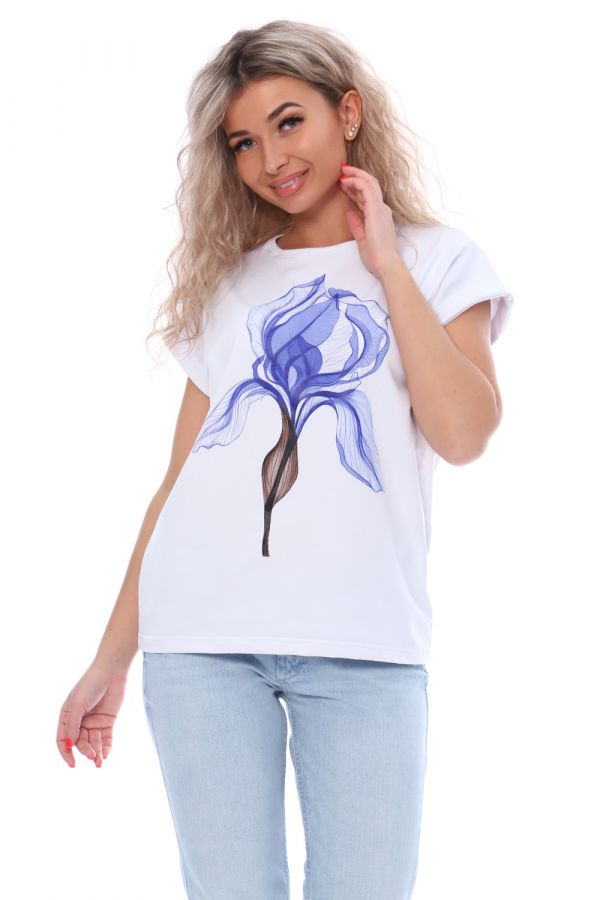 Футболка женская из хлопковой ткани с лайкрой. Ткань держит форму, не вытягивается, приятная на ощупь. Стильная футболка классического фасона со спущенным рукавом. Посадка свободная. Эта базовая модель подойдет абсолютно всем и станет необходимой вещью в вашем гардеробе.
