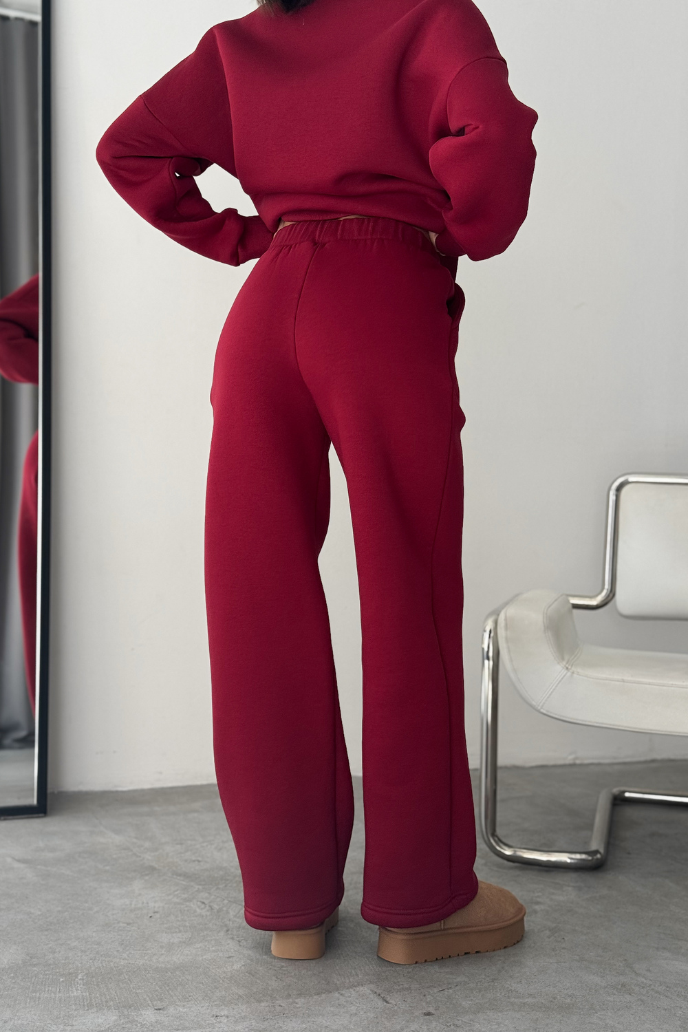 Теплый женский спортивный костюм — отличный выбор в качестве базовой одежды для зимы и холодного демисезонного периода! Комплект - двойка из коллекции включает свитшот с длинными рукавами и брюки с высокой посадкой. Модели сшиты из мягкого и приятного к телу футера. Это плотный материал, который приятно согревает и отлично дышит. В составе ткани хлопок и полиэстер. Вещи имеют прямой крой и свободно сидят по фигуре.