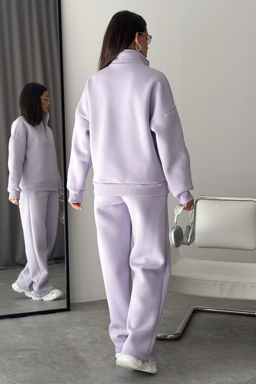 Теплый женский спортивный костюм — отличный выбор в качестве базовой одежды для зимы и холодного демисезонного периода! Комплект - двойка из коллекции включает свитшот с длинными рукавами и брюки с высокой посадкой. Модели сшиты из мягкого и приятного к телу футера. Это плотный материал, который приятно согревает и отлично дышит. В составе ткани хлопок и полиэстер. Вещи имеют прямой крой и свободно сидят по фигуре.