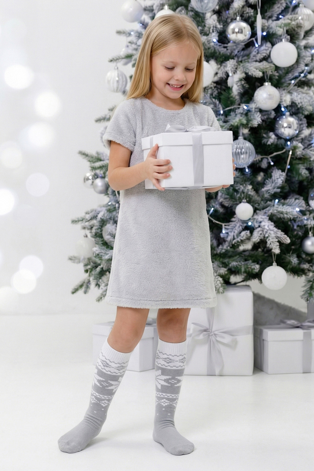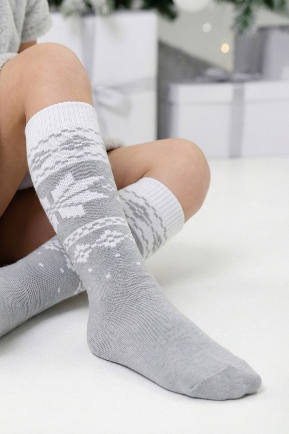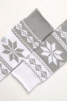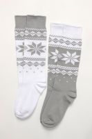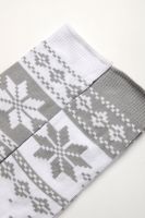 Очаровательные хлопковые гольфы отлично подойдут для встречи Нового года в семейном кругу или тематических фотосессий. Носки с новогодним рисунком это отличный сувенир друзьям, детям и коллегам. Благодаря удобной упаковке, можно подарить каждую пару отдельно. Новогодний принт на носках задает веселое настроение и притягивает взгляды окружающих. Высокое качество нитей сохраняет форму и цвет после стирки, а также препятствует образованию катышек. Такой новогодний подарок будет приятно получить и подарить! В набор входят 2 пары разных гольфов определенной расцветки на выбор - синей или серой.