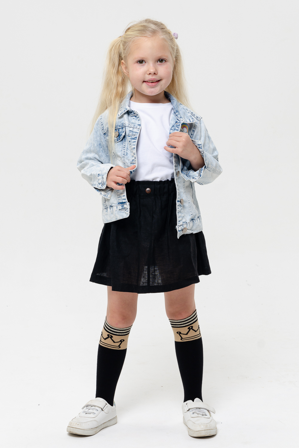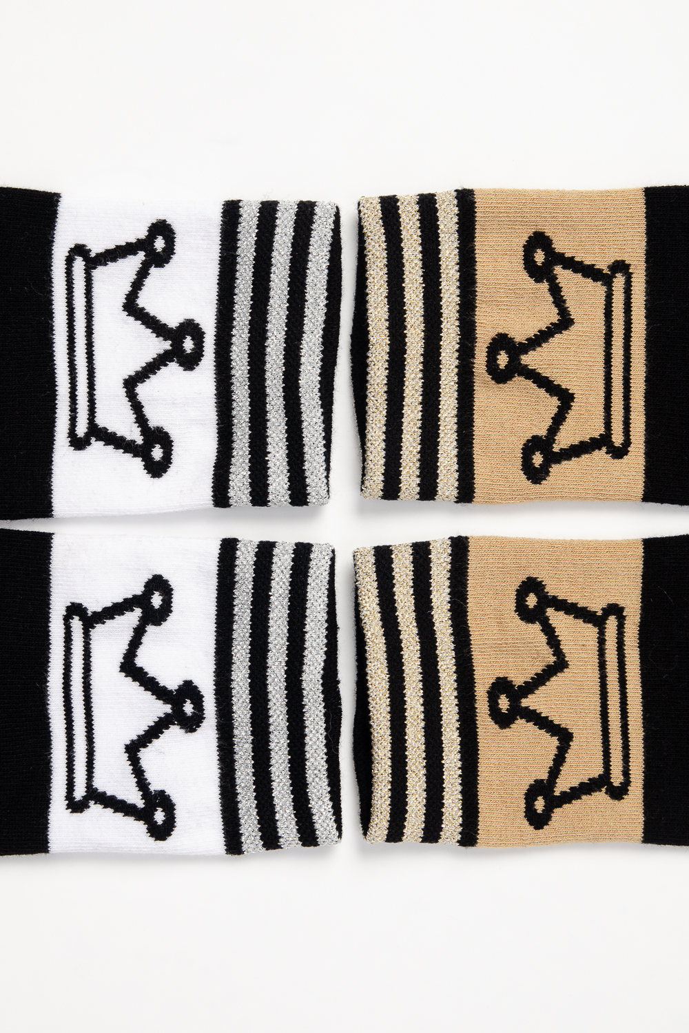 Стильные подростковые гольфы с лаконичным рисунком в виде короны и тонких полос с люрексом. Нарядные гольфы подойдут как для праздника, так и на каждый день.