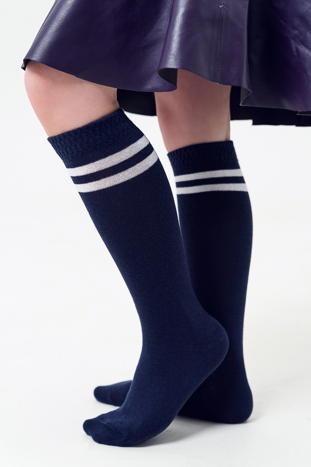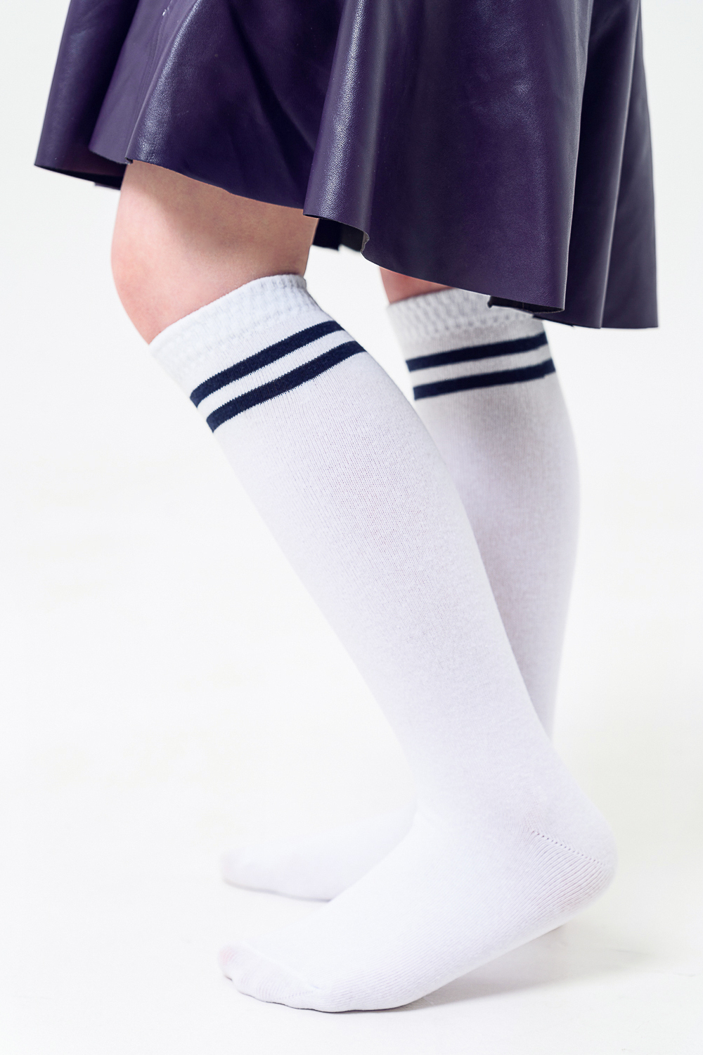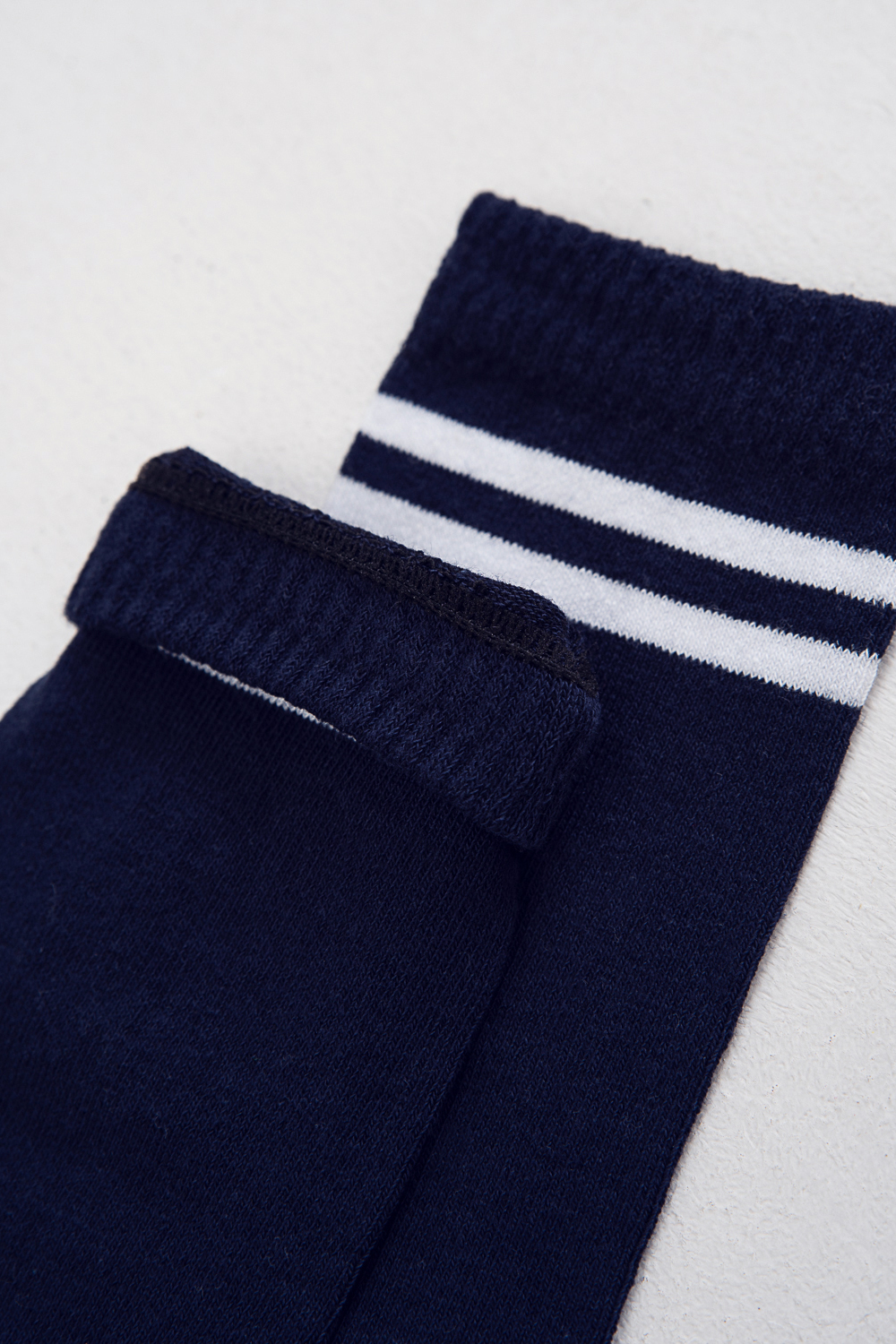 Классические гольфы для детей. Сверху узор из двух полос другого цвета.
