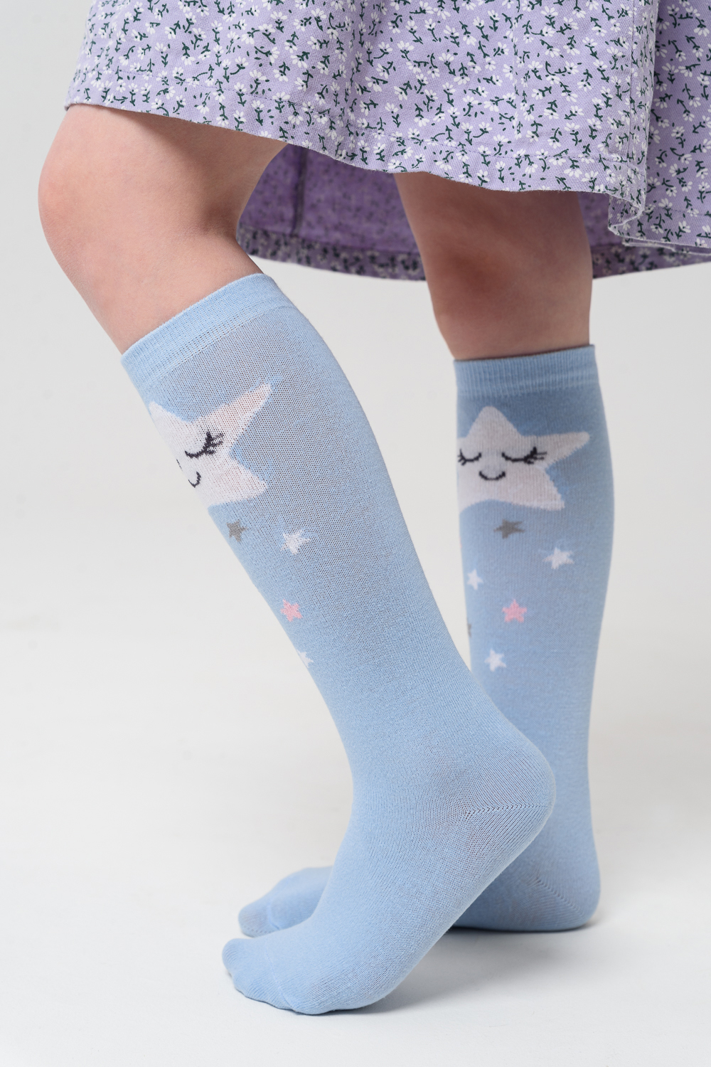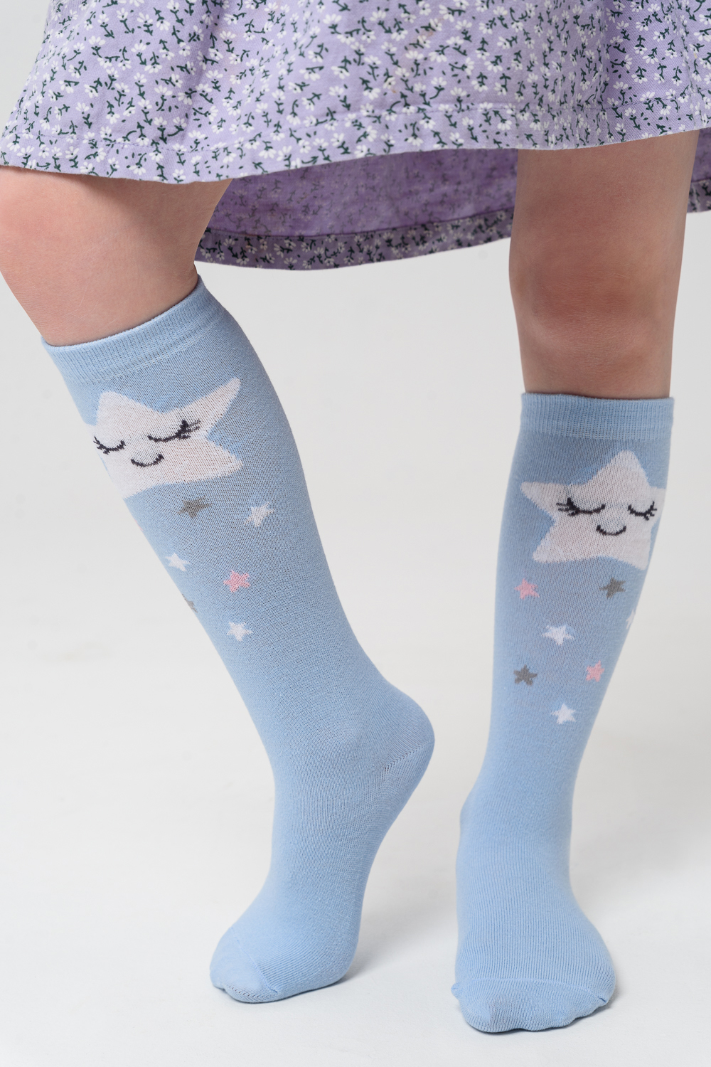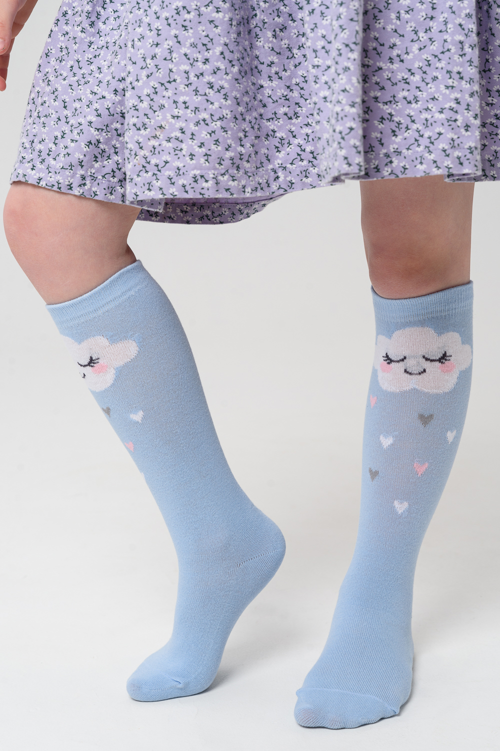 Детские гольфы для девочек с изображением 2 пары, в наборе пара со "звёздочкой" и пара с "облачком"