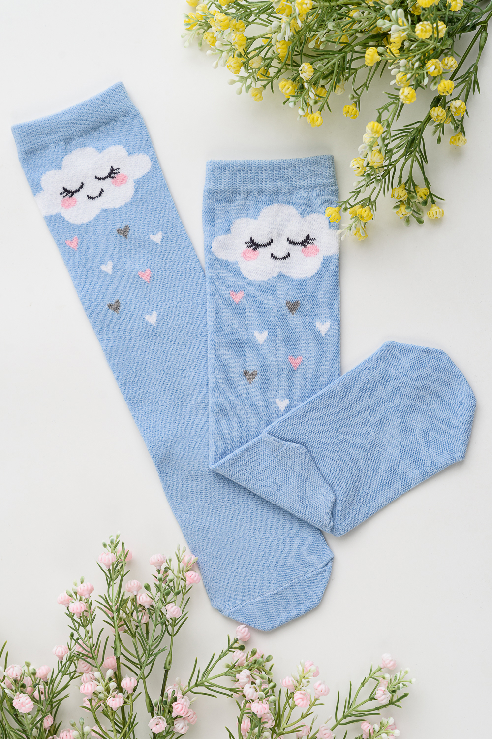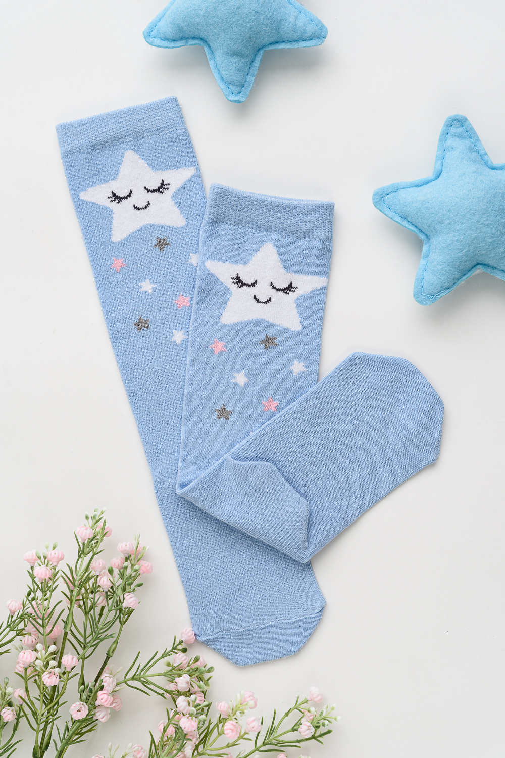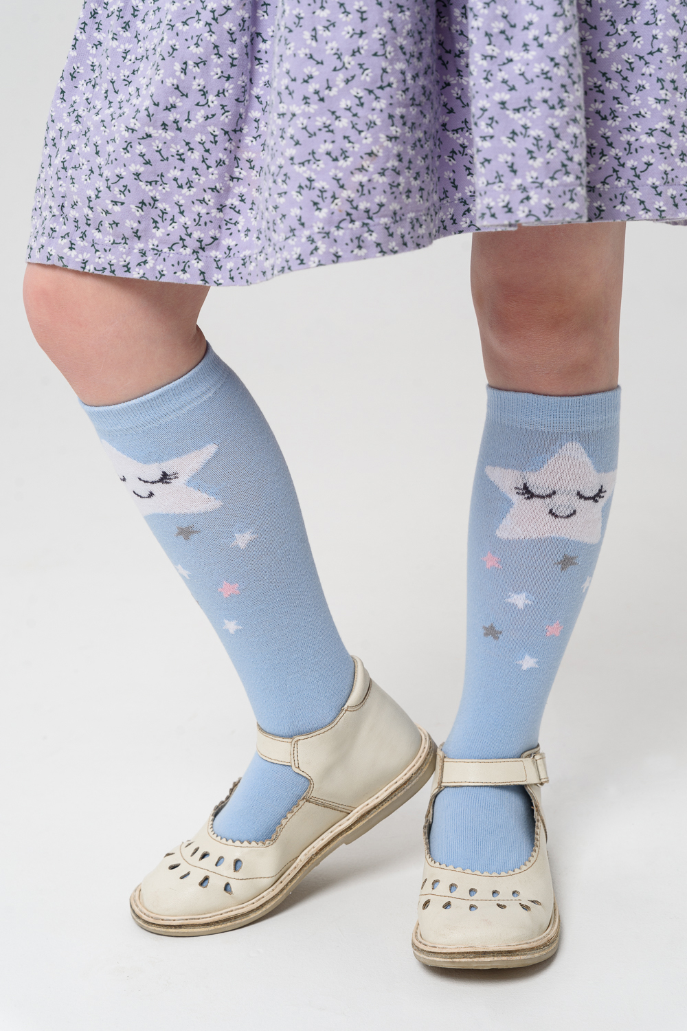 Детские гольфы для девочек с изображением 2 пары, в наборе пара со "звёздочкой" и пара с "облачком"