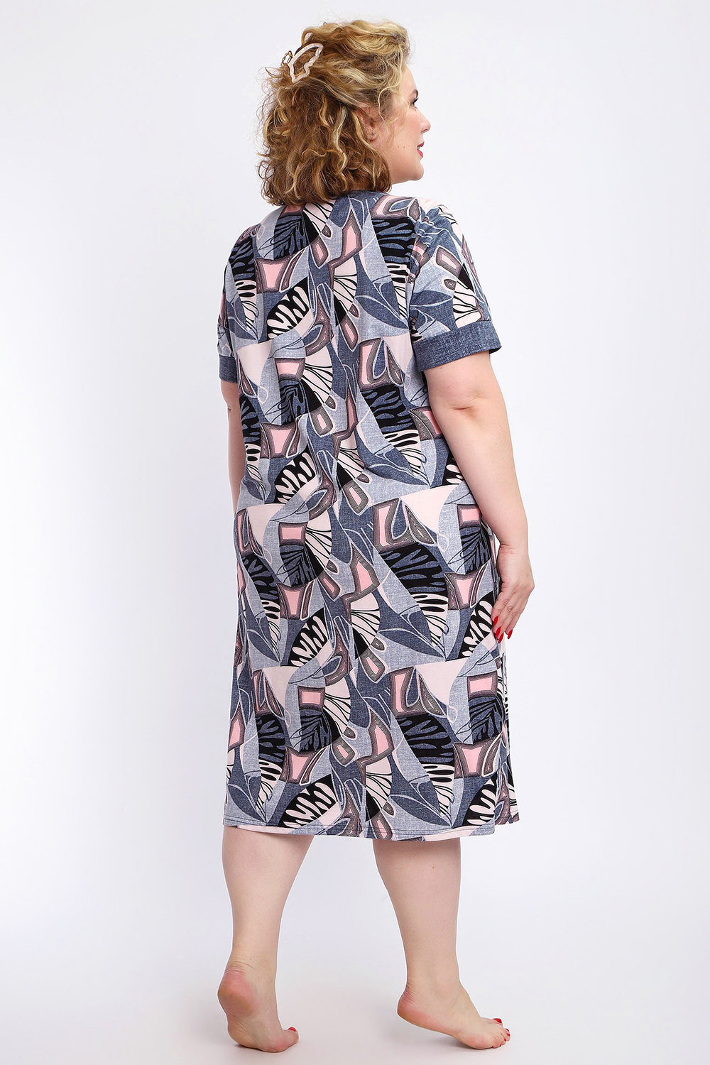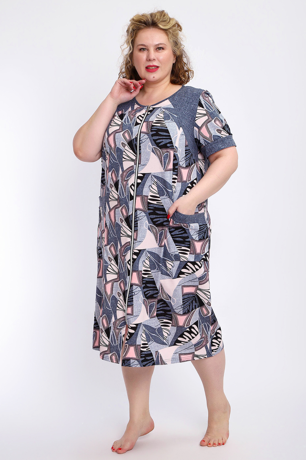 Ощутите домашний уют и комфорт - выбирайте халат женский домашний больших размеров из мягкой хлопковой ткани с очаровательным принтом. Халат на молнии является самой популярной моделью, обеспечивает удобство во время носки, не сковывает движений. Прямой свободный крой платья позволяет скрыть недостатки фигуры и ощущать легкость во время домашнего отдыха. Халат домашний дополнен накладными карманами и стильной круглой горловиной, которая оформлена декоративными планками. Длина платья универсальная, за колено. В наличии есть большие размеры, поэтому выбирайте такой халат в роддом. Изделие выглядит стильно и привлекательно за счет нежных светлых бутонов цветов на контрастном темном фоне. Женская домашняя одежда российского производства имеет идеальную посадку, не линяет, не дает усадку после стирки и долго сохраняет первоначальный внешний вид. Этот женский универсальный халат изготовлен из 100% хлопка, поэтому его можно хорошо использовать как банный халат. Для вашего удобства у халатика есть два боковых кармана, которые хорошо подходят для телефона или всяких мелочей. Размерная сетка включает в себя большие размеры ( до 74 размера). Халат трикотажный выполнен из 100% хлопка. Ткань не вызывает аллергии, не электризуется, хорошо держит форму, не деформируется при стирке. Мягкое трикотажное полотно отлично пропускает воздух, позволяет коже дышать, что актуально в самые жаркие летние дни. Благодаря универсальному крою халат в нежной расцветке подходит для покупательниц любого возраста и любого типа женской фигуры, скрывает недостатки и подчеркивает достоинства. Свободный силуэт позволяют носить его как домашнее платье, даря удобство и комфорт в течение всего дня. Домашний халат с рукавами отлично подойдет в подарок маме, бабушке или сестре на новый год, 8 марта или просто так порадовать.