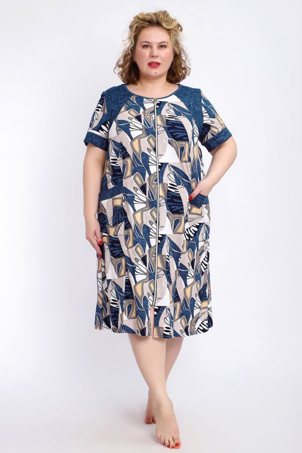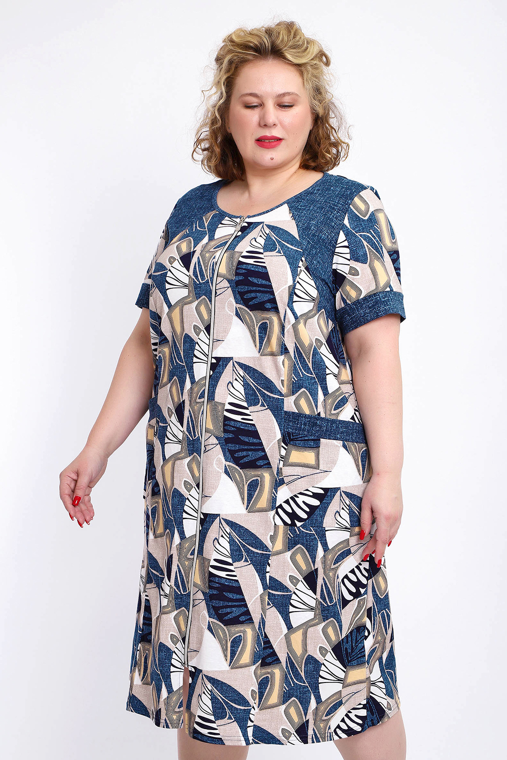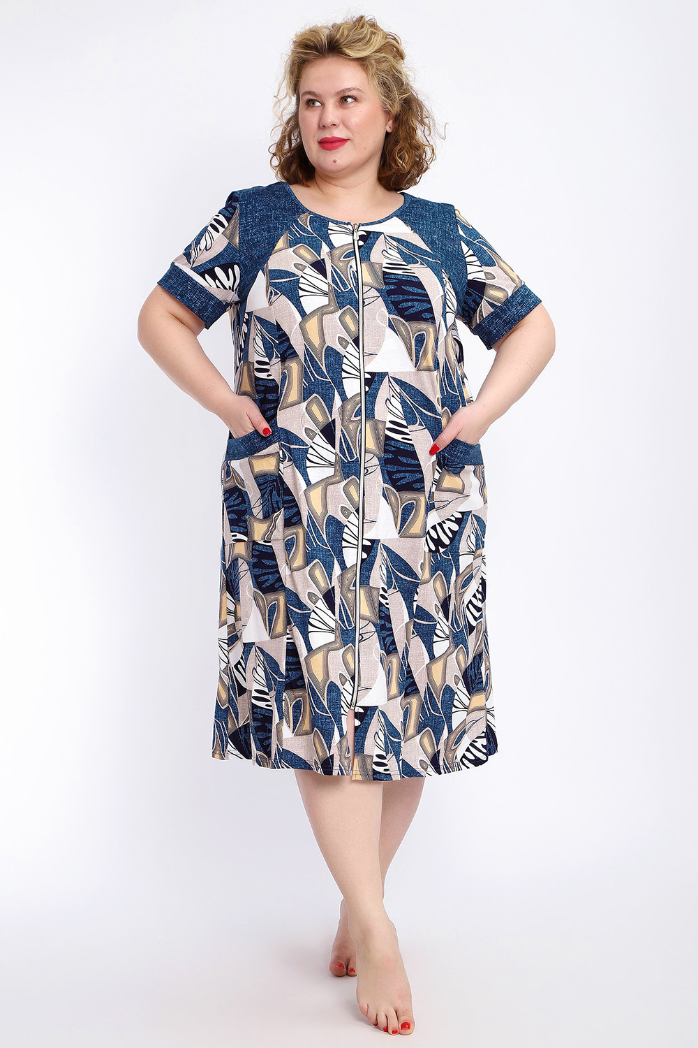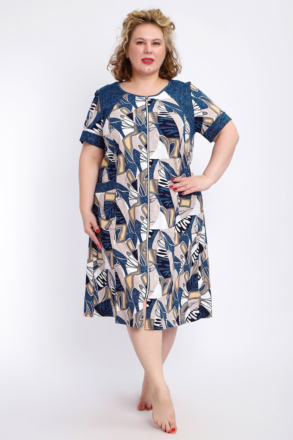 Ощутите домашний уют и комфорт - выбирайте халат женский домашний больших размеров из мягкой хлопковой ткани с очаровательным принтом. Халат на молнии является самой популярной моделью, обеспечивает удобство во время носки, не сковывает движений. Прямой свободный крой платья позволяет скрыть недостатки фигуры и ощущать легкость во время домашнего отдыха. Халат домашний дополнен накладными карманами и стильной круглой горловиной, которая оформлена декоративными планками. Длина платья универсальная, за колено. В наличии есть большие размеры, поэтому выбирайте такой халат в роддом. Изделие выглядит стильно и привлекательно за счет нежных светлых бутонов цветов на контрастном темном фоне. Женская домашняя одежда российского производства имеет идеальную посадку, не линяет, не дает усадку после стирки и долго сохраняет первоначальный внешний вид. Этот женский универсальный халат изготовлен из 100% хлопка, поэтому его можно хорошо использовать как банный халат. Для вашего удобства у халатика есть два боковых кармана, которые хорошо подходят для телефона или всяких мелочей. Размерная сетка включает в себя большие размеры ( до 74 размера). Халат трикотажный выполнен из 100% хлопка. Ткань не вызывает аллергии, не электризуется, хорошо держит форму, не деформируется при стирке. Мягкое трикотажное полотно отлично пропускает воздух, позволяет коже дышать, что актуально в самые жаркие летние дни. Благодаря универсальному крою халат в нежной расцветке подходит для покупательниц любого возраста и любого типа женской фигуры, скрывает недостатки и подчеркивает достоинства. Свободный силуэт позволяют носить его как домашнее платье, даря удобство и комфорт в течение всего дня. Домашний халат с рукавами отлично подойдет в подарок маме, бабушке или сестре на новый год, 8 марта или просто так порадовать.