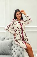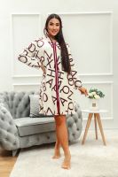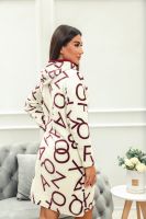 Халат на молнии с капюшоном выполнен из велюра с принтом Буквы. Халат окантован тканью контрастного цвета, рукав длинный подшит. Халат комфортный, уютный, мягкий, идеально подойдет для дома и отдыха.