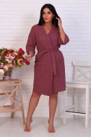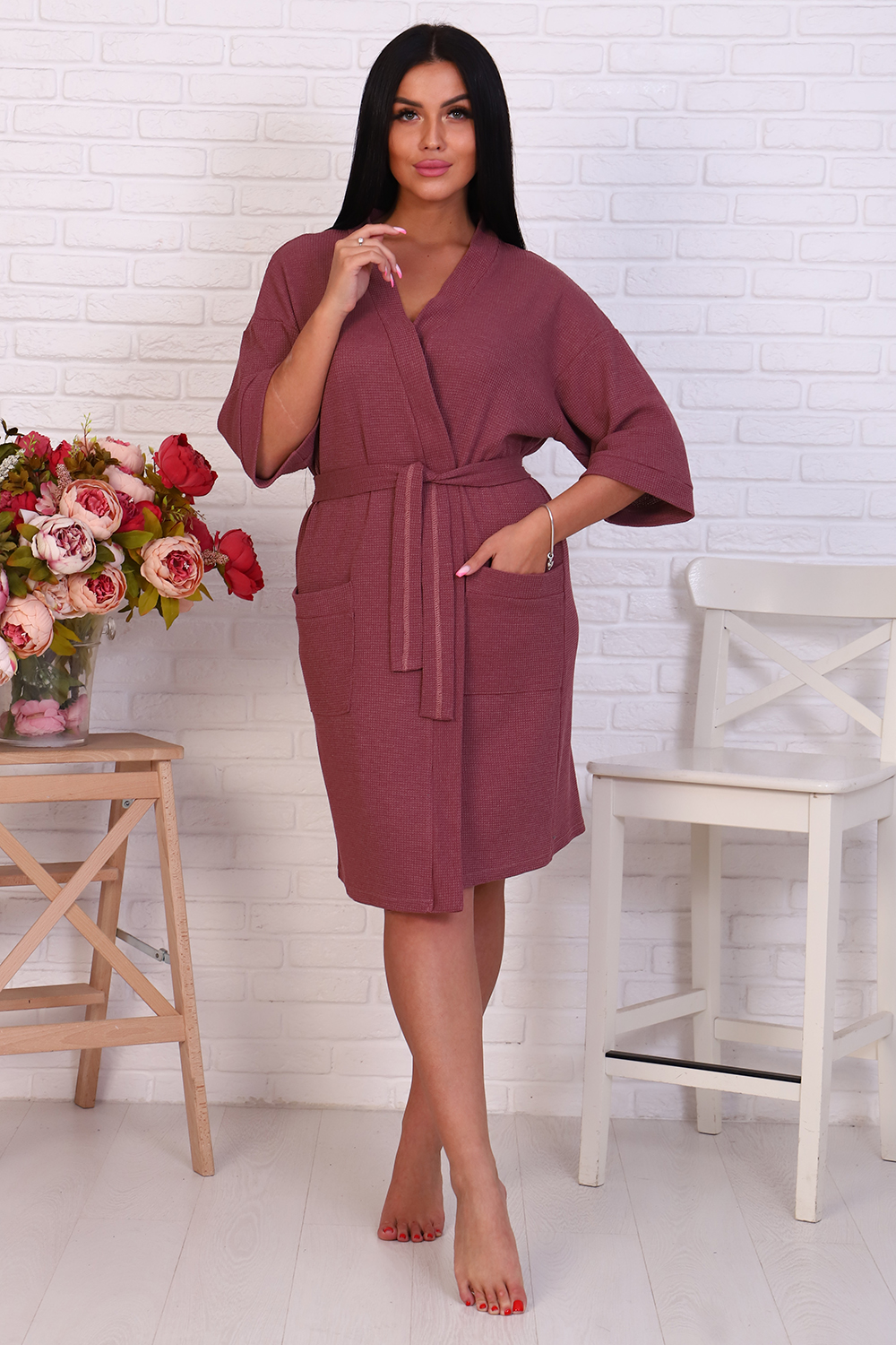 Халат женский из трикотажного полотна СОТЫ. Модель свободного кроя, запашной на широкой планке с поясом, спущенная пройма, широкий 3/4 рукав на манжете, удобные накладные карманы. Домашний халатик - это уютная, приятная к телу, практически незаменимая вещь в гардеробе женщины любого возраста. Трикотаж СОТЫ или стрейч СОТЫ полностью соответствует названию. Оригинальный набивной рисунок, образованный переплетением волокон, внешне напоминает пчелиные соты. Полотно мягкое, эластичное и прочное, легко стирается, практически не мнется, не деформируется.