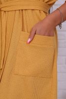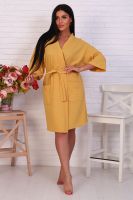 Халат женский из трикотажного полотна СОТЫ. Модель свободного кроя, запашной на широкой планке с поясом, спущенная пройма, широкий 3/4 рукав на манжете, удобные накладные карманы. Домашний халатик - это уютная, приятная к телу, практически незаменимая вещь в гардеробе женщины любого возраста. Трикотаж СОТЫ или стрейч СОТЫ полностью соответствует названию. Оригинальный набивной рисунок, образованный переплетением волокон, внешне напоминает пчелиные соты. Полотно мягкое, эластичное и прочное, легко стирается, практически не мнется, не деформируется.