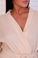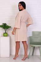 Халат женский из трикотажного полотна СОТЫ. Модель свободного кроя, запашной на широкой планке с поясом, спущенная пройма, широкий 3/4 рукав на манжете, удобные накладные карманы. Домашний халатик - это уютная, приятная к телу, практически незаменимая вещь в гардеробе женщины любого возраста. Трикотаж СОТЫ или стрейч СОТЫ полностью соответствует названию. Оригинальный набивной рисунок, образованный переплетением волокон, внешне напоминает пчелиные соты. Полотно мягкое, эластичное и прочное, легко стирается, практически не мнется, не деформируется.