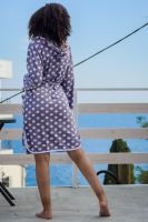 Удобный женский халат из легкой хлопковой махры. Модель с застежкой на молнии, с капюшоном, двумя карманами по бокам и длинным рукавом