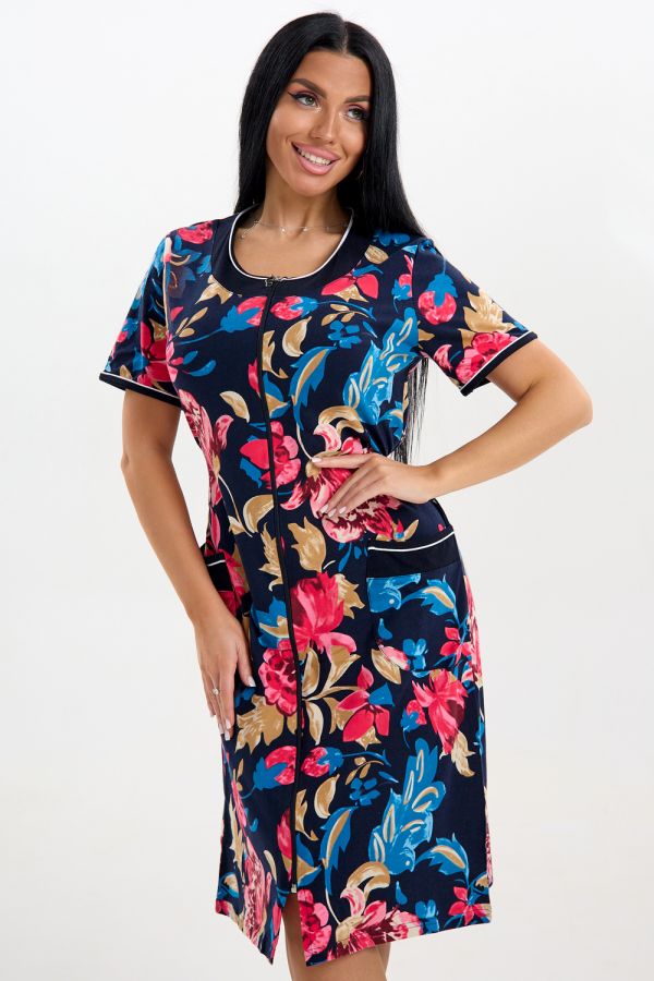 Удобный и практичный халат без рукавов. Застежка на молнию, оригинальный крой полочки. Отлично подходит для лета.