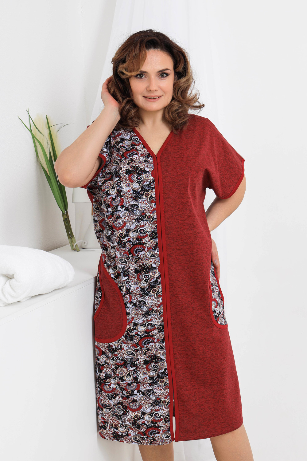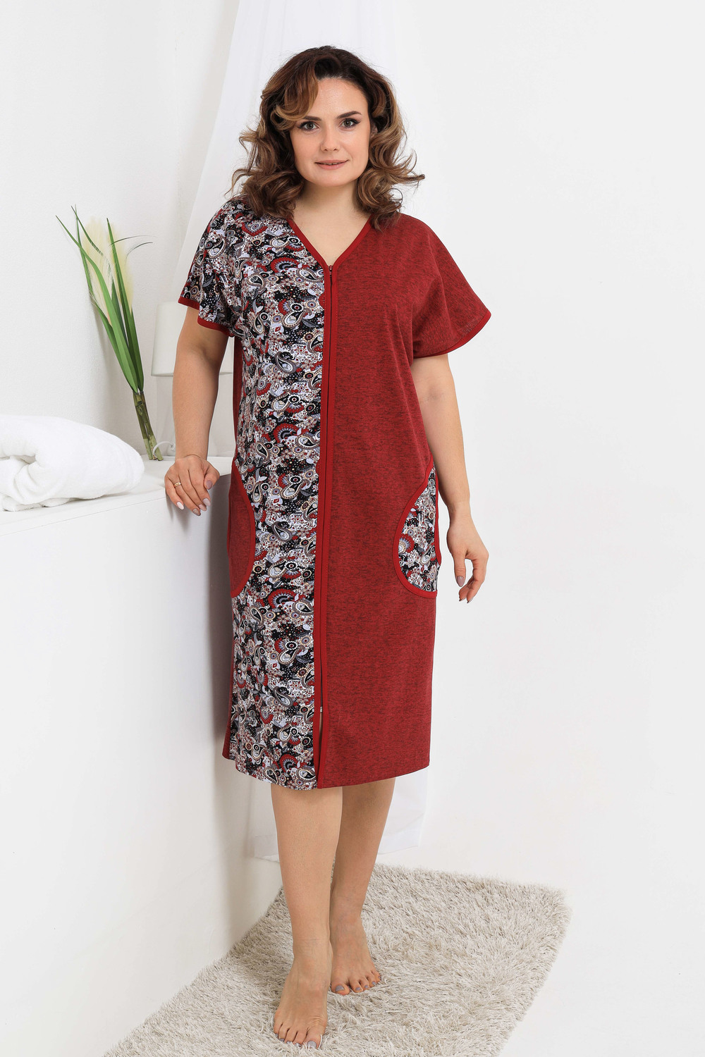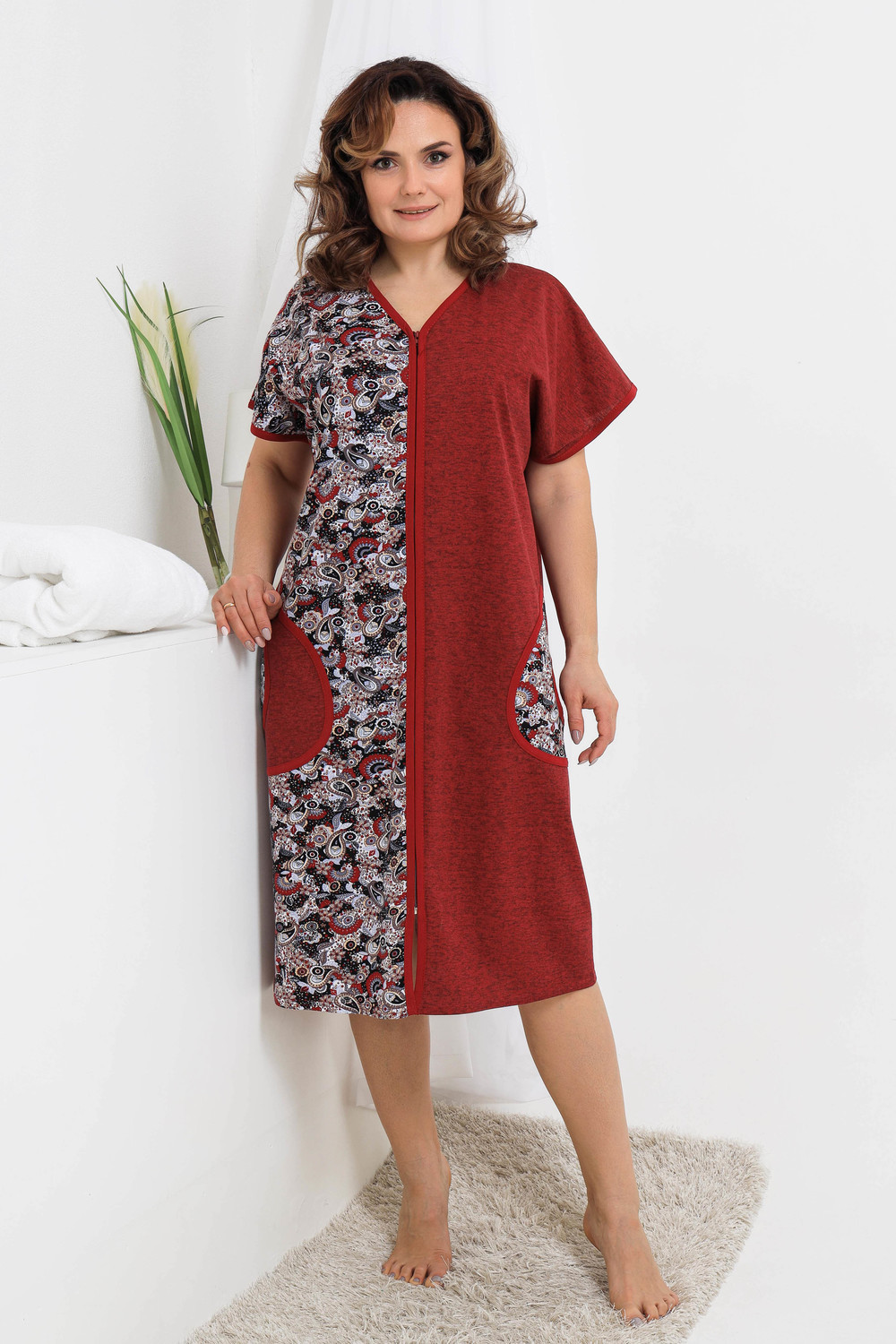 Уютный безрукавный домашний халат. Модель выполнена из 100% хлопка, на молнии, с двумя карманами по бокам. Незаменимая вещь в женском гардеробе.