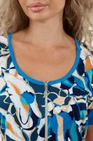 Женский халатик на молнии – самая распространенная и универсальная одежда для домашнего отдыха и хозяйственных хлопот. После трудного рабочего дня, приходя домой, первым делом хочется переодеться. И данная модель это идеальный вариант среди представительниц прекрасной половины человечества. Модель выполнена из 100% хлопчатобумажной ткани. Халат так же дополняет яркая отделка по рукавам и карманам. А пояс на линии талии поможет легко смоделировать женственный силуэт и при этом Вы будете чувствовать себя легко и непринуждённо. Данная модель прекрасно подойдёт для дома, дачи и отдыха, создавая по-настоящему яркий образ и хорошее настроение! Рост модели на фото 165см.