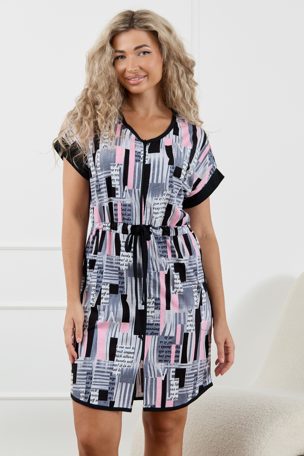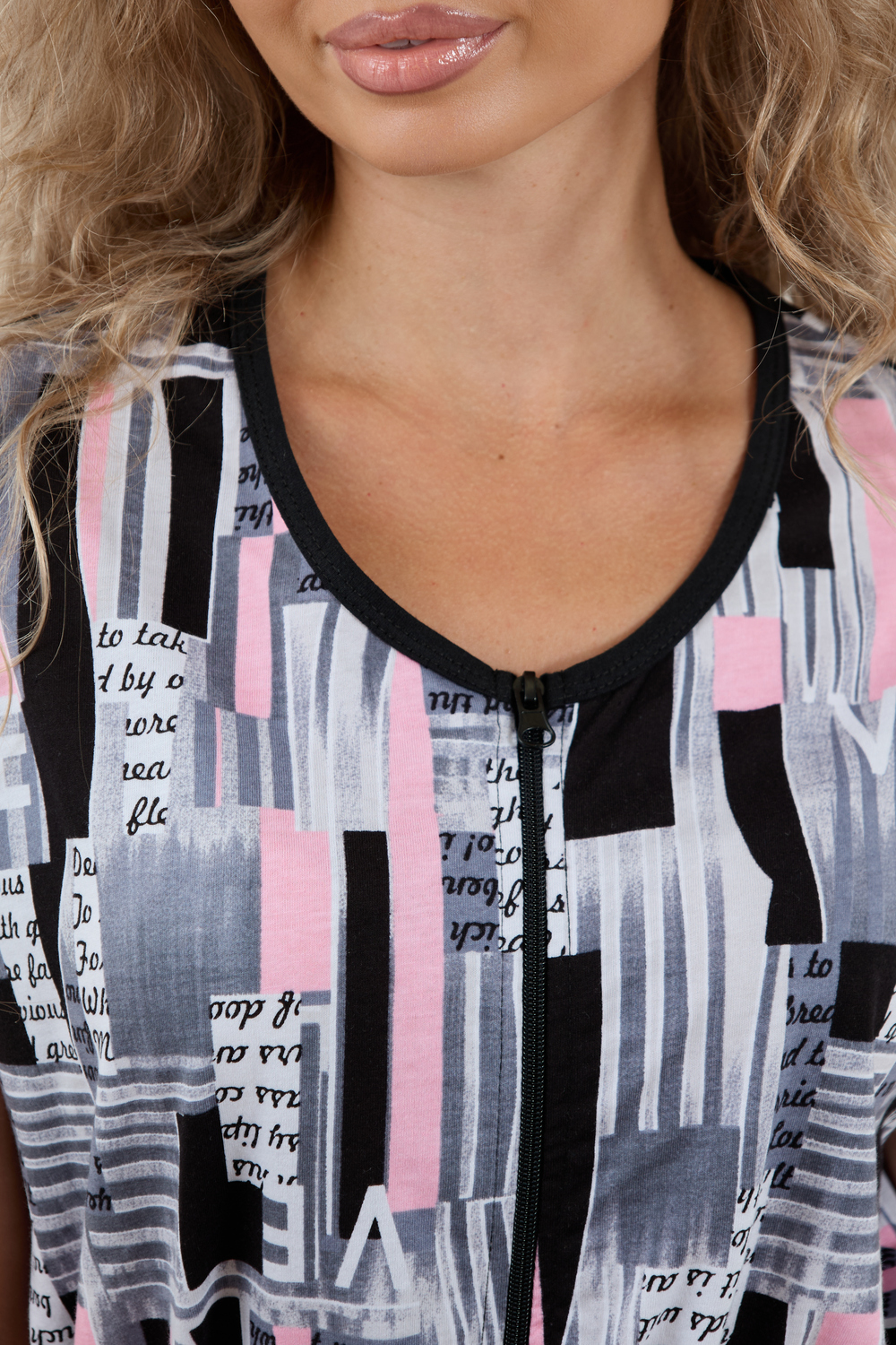 Женский трикотажный халат на молнии без сомнения станет самой желанной и любимой вещью в гардеробе любой дамы. Халатик укороченный, на кулисе со шнурком, с удобными карманами и молнией. Выглядит стильно и современно. Халатик такого плана подходит для фигур разного типа. Легкий и мягкий, качественный, дышащий, сшит из высококачественного трикотажа, подарит вам абсолютную непринужденность и легкость, простор в движении, идеально подойдет для беременных и кормящих и будет хорошим сопровождением в роддом и не вызовет раздражения, так как создан из натуральной ткани. Благодаря этому может стать прекрасным подарком для, мамы, подруги, бабушки, сестры или коллеги на любой праздник. Отлично сядет на женщин больших размеров. Данная модель будет кстати для отдыха на даче и даже поездки к морю. Домашняя одежда российского производства, имеет комфортную посадку, не линяет, не дает усадку после стирки и долго сохраняет первоначальный внешний вид. Халатик подчеркнет Ваш стиль и добавит молодежных нот в ваш образ, а затягивающийся пояс на талии придаст женственности и изящества вашему луку. Стирайте изделия из хлопка на бережном режиме с температурой не выше 30С, чтобы сохранить цвет, форму и фактуру материала. Приобретая наши изделия, радуйте себя и своих близких. Ориентируясь по таблице замеров, обратите внимание, что замеры длины рукава проводились от точки основания шеи.