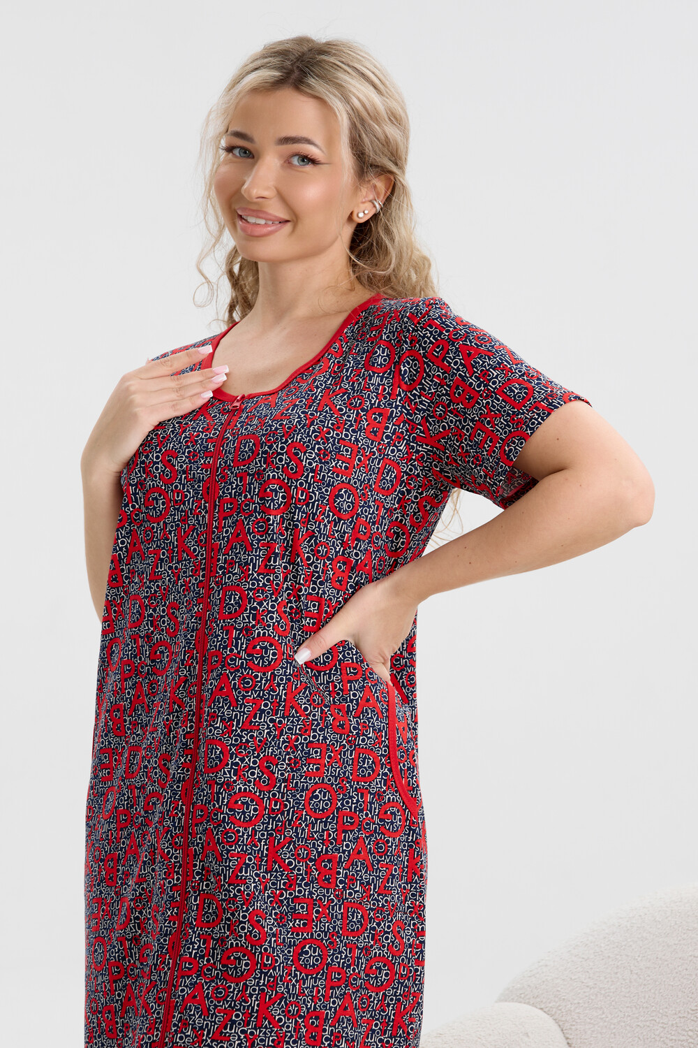 Модный и яркий женственный халатик выполнен из 100% хлопчатобумажной ткани, что обеспечивает максимальный комфорт при ношении. Отличается мягкостью и приятной на ощупь текстурой. Материал прекрасно дышит. Носить такой халатик Вы сможете как летом, так и в любой другой сезон. Надёжный замок на молнии сохраняет свои свойства в течении всего времени использования. Женственный вырез и 2 боковых кармана добавляют образу шарм и делают изделие удобным и практичным. Изысканный халатик подойдёт для любого типа фигуры. Отличная модель для дома, для роддома, после родов, для кухонных дел и хозяйственной уборки, для дачи. И конечно идеально после душа, сауны, бани и ванной. А так же будет замечательным подарком на любой праздник: 14 февраля, день рождения, 8 марта. Рекомендуется стирать в деликатном режиме 30 °С. Это поможет избежать деформации и сохранить яркость цвета.