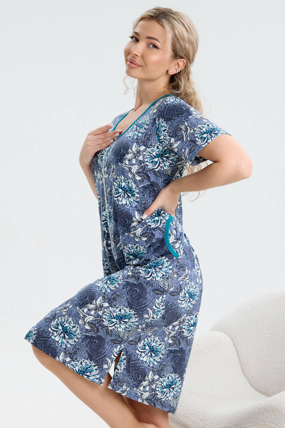 Модный и нежный женственный халатик в двух расцветках выполнен из 100% хлопчатобумажной ткани, что обеспечивает максимальный комфорт при ношении. Отличается мягкостью и приятной на ощупь текстурой. Материал прекрасно дышит. Носить такой халатик Вы сможете как летом, так и в любой другой сезон. Надёжный замок на молнии сохраняет свои свойства в течении всего времени использования. Женственный вырез и 2 боковых кармана добавляют образу шарм и делают изделие удобным и практичным. Изысканный халатик подойдёт для любого типа фигуры. Отличная модель для дома, для роддома, после родов, для кухонных дел и хозяйственной уборки, для дачи. И конечно идеально после душа, сауны, бани и ванной. А так же будет замечательным подарком на любой праздник: 14 февраля, день рождения, 8 марта. Рекомендуется стирать в деликатном режиме 30 °С. Это поможет избежать деформации и сохранить яркость цвета.