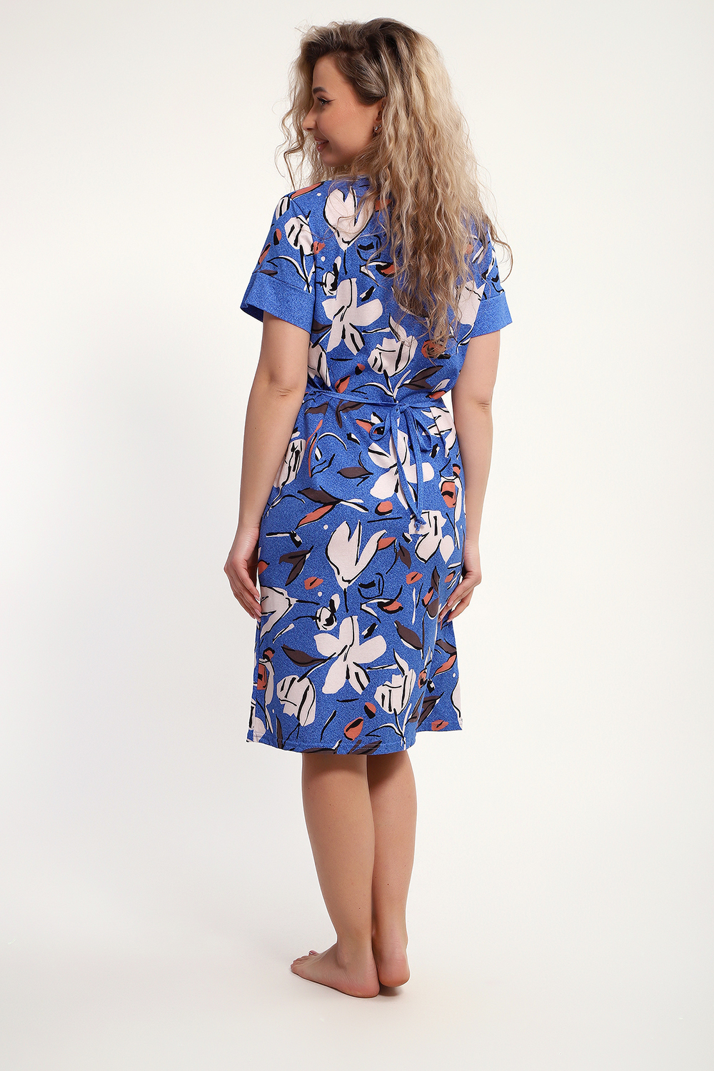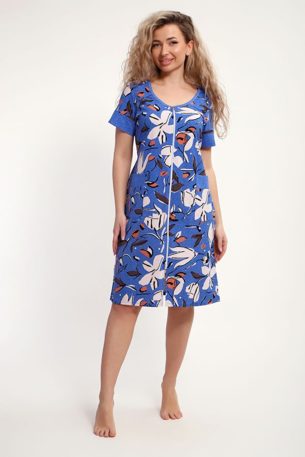 Женский халатик на молнии – самая распространенная и универсальная одежда для домашнего отдыха и хозяйственных хлопот. После трудного рабочего дня, приходя домой, первым делом хочется переодеться. И данная модель это идеальный вариант среди представительниц прекрасной половины человечества. Модель выполнена из 100% хлопчатобумажной ткани. Халат так же дополняет яркая отделка по рукавам и карманам. А пояс на линии талии поможет легко смоделировать женственный силуэт и при этом Вы будете чувствовать себя легко и непринуждённо. Данная модель прекрасно подойдёт для дома, дачи и отдыха, создавая по-настоящему яркий образ и хорошее настроение! Рост модели на фото 165см.