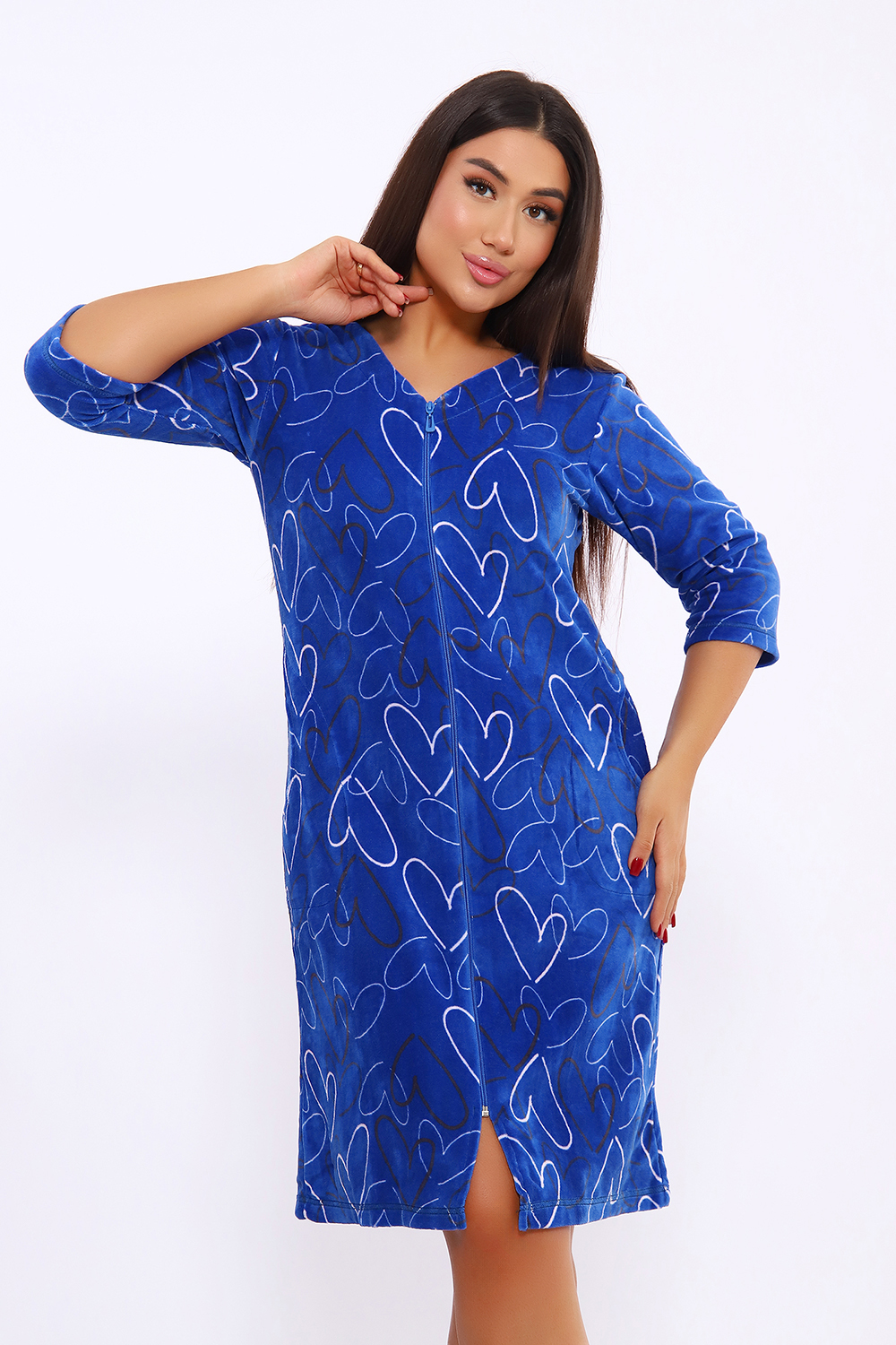 Халат женский велюровый на молнии. Прямой, вырез V-образный, халат с отстрочкой, с карманами, рукав 3/4. Полочка и спинка имеют небольшие закругления. Качественный велюр, отличная вещь для дома и отдыха