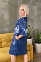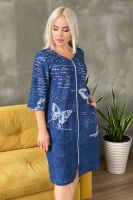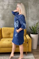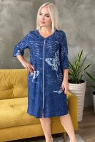 Халат женский полуприлегающего силуэта. Рукав втачной 3/4. Вырез y-образный. В боковых швах внутренние карманы. На полочках и рукавах принт