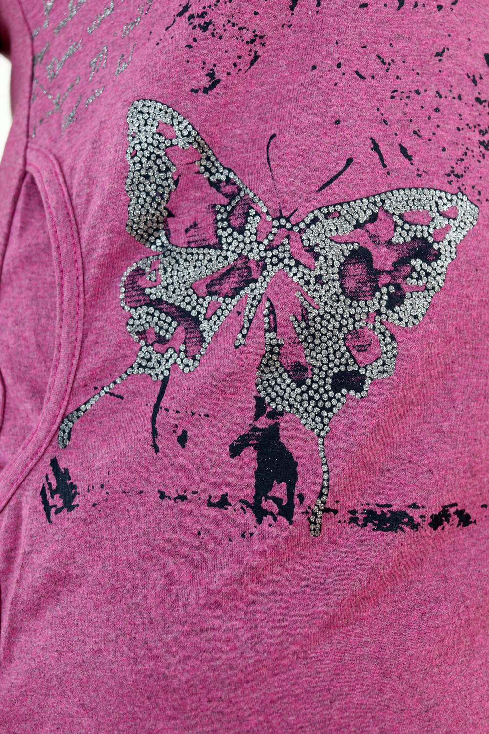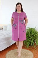 Халат женский полуприлегающего силуэта. Рукав втачной короткий. Вырез Y-образный. На полочках внутренние карманы. Оригинальный принт с бабочками на полочках и рукавах. На модели 52 размер