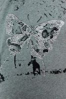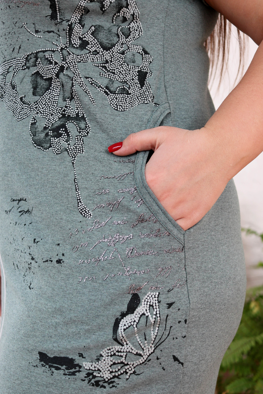 Халат женский полуприлегающего силуэта. Рукав втачной короткий. Вырез Y-образный. На полочках внутренние карманы. Оригинальный принт с бабочками на полочках и рукавах. На модели 52 размер