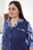 Халат женский полуприлегающего силуэта. Воротник английского типа, рукав втачной 3/4. Застежка на петли - пуговицы. Воротник, спинка, рукава и обтачка нагрудного кармана из отделочной ткани. На полочках два внутренних кармана, на левой полочке нагрудный карман, на правой полочке принт.