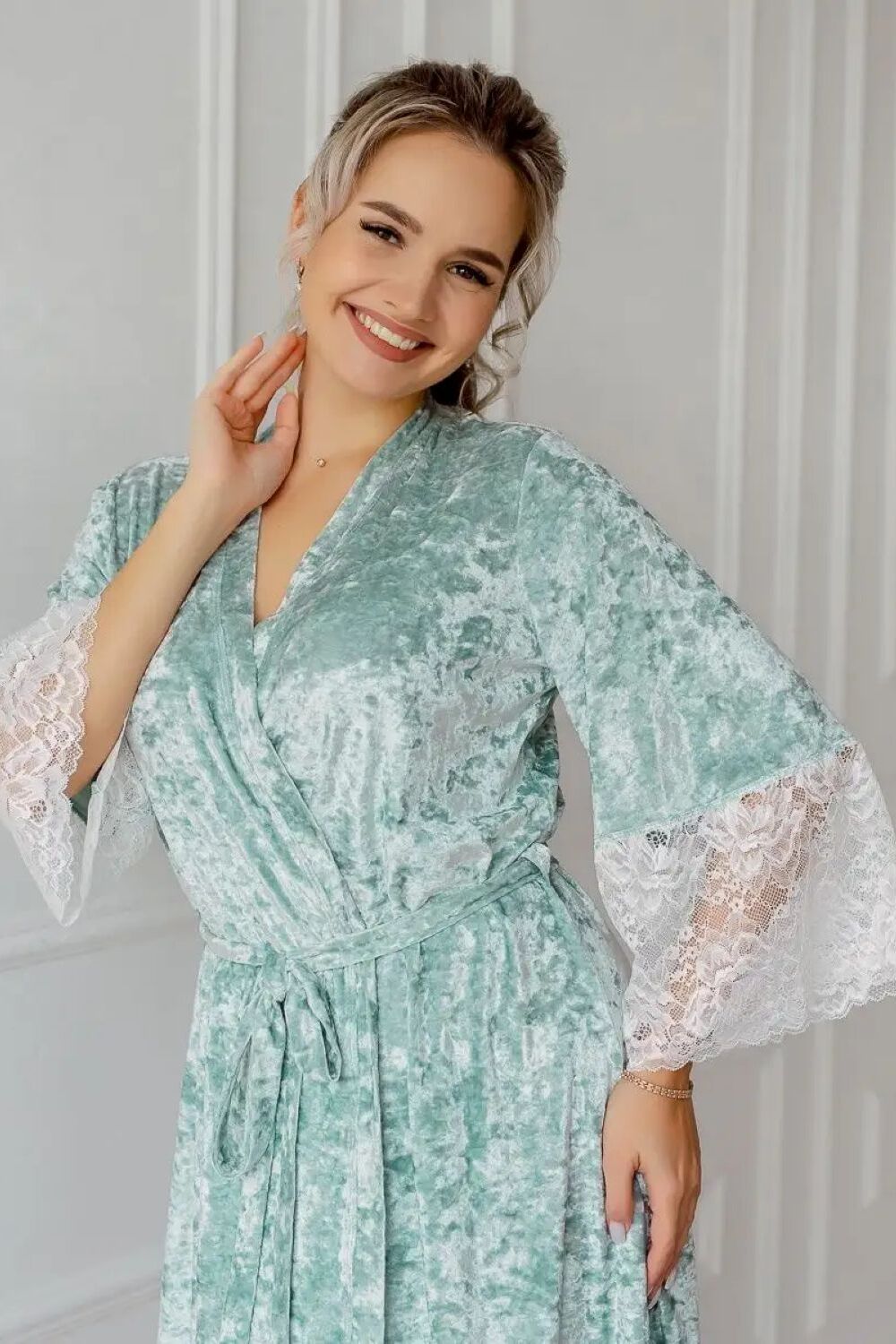 Халат домашний женский премиум качества с кружевом в благородном цвете. Халатик длиною до колена, на запах, очень комфортный в носке, мягкий и приятный к телу. Отделка кружевом по рукавам и подолу добавит женственности и воздушности в Ваш домашний образ. Внутренние фиксирующие завязки и внешний пояс надежно зафиксируют изделие. Пеньюар представлен в однотонных благородных оттенках. Модель идеальна в посадке и сохранит форму даже после многократных стирок. Благодаря крою подойдет на маленькие и большие размеры. Качественный трикотаж позволяет коже свободно дышать, подойдет как халат для рожениц. Халат для беременных не сдавливает увеличивающийся в размерах животик, запах удобен для легкого кормления грудью. Возьмите его в роддом и будете самой элегантной мамочкой. Носить его можно отдельно. Накиньте прямо поверх комбинации или на нарядное нижнее белье. Идеально смотрится как на высоких, так и на невысоких девушках. Отлично сидит на худеньких подростках. Благодаря наличию большого размерного ряда дамы с пышными формами смогут подобрать себе оптимальный размер. Подарите шикарный пеньюар сестре, подруге или бабушке на 8 марта. Сделайте новогодний подарок для любой женщины. Добавляйте Бренд одежды Совушка трикотаж в избранное, чтобы следить за всеми новинками и проходящими акциями. Удачных Вам покупок!