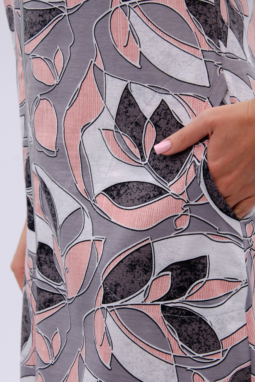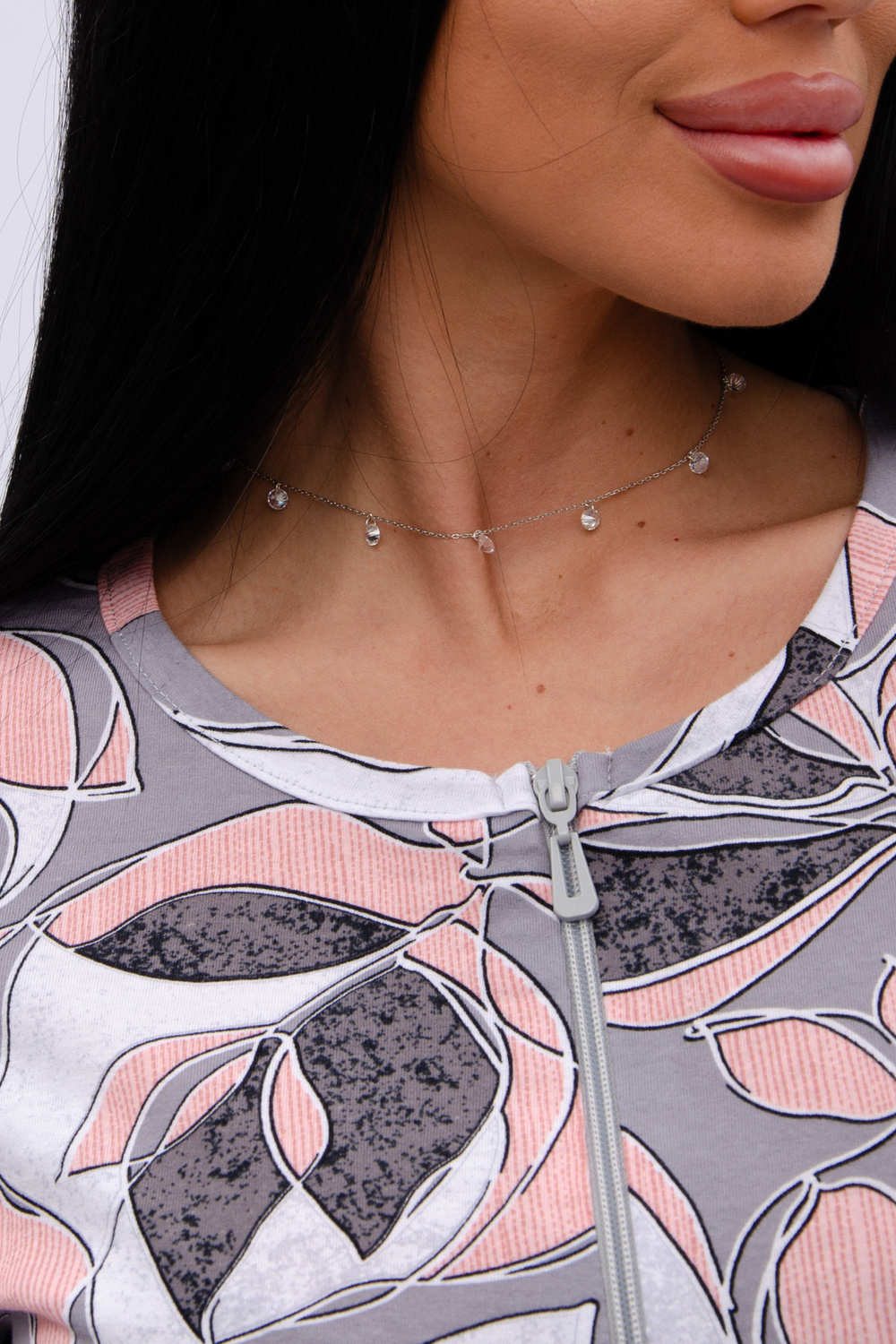 Женский халат на молнии. Рукав короткий. Красивый вырез на полочке. Халат прекрасно подойдет для дома, дачи и отдыха.