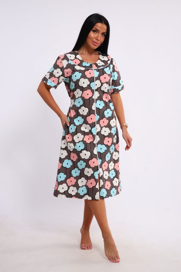 Характеристика Ткань 100 % кулирка Размеры 50 -60 рост 164-175 Представлем Вашему вниманию халат женский на молнии из кулирки свободного покроя. За счет задних завязок можно регулировать пояс. Горловина халата обрезная. Халат женский женский не только удобный, но и красивый вариант дающий почуствовать по особенному в домашней обстановке.