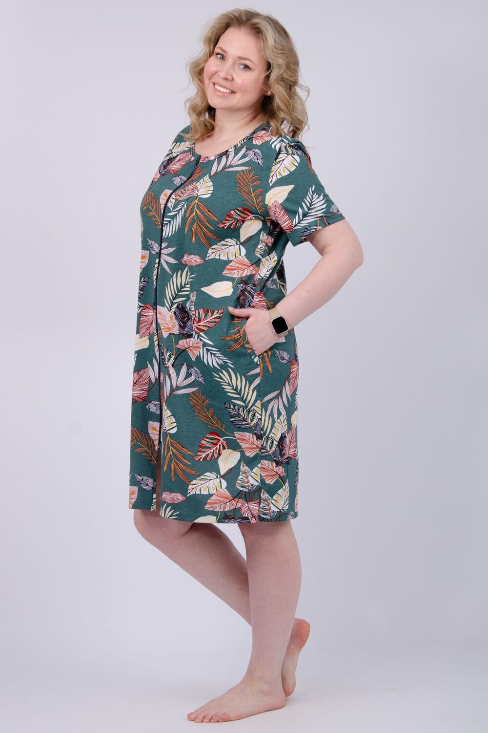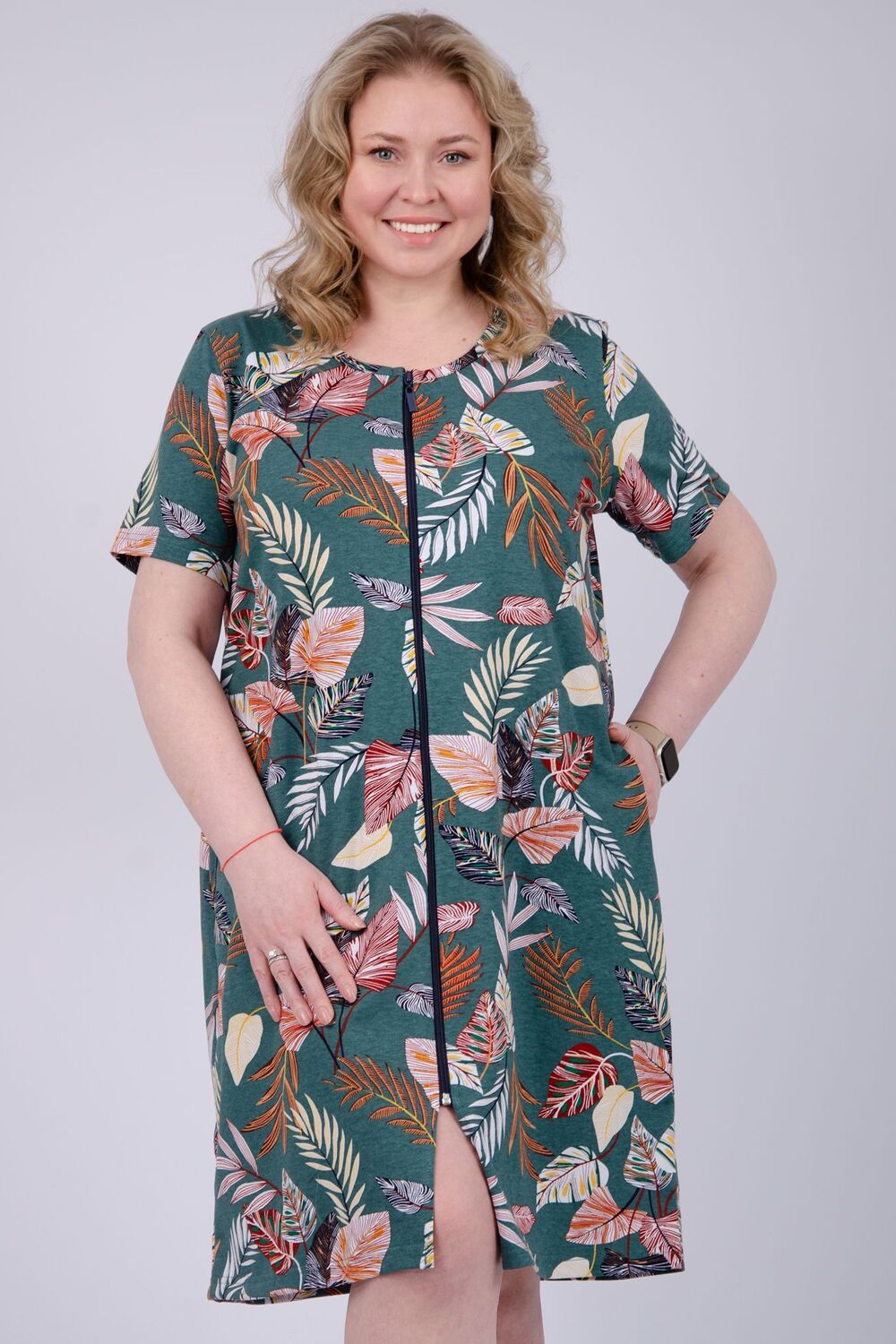 Женский халатик на молнии – самая распространенная и универсальная одежда для домашнего отдыха и хозяйственных хлопот. После трудного рабочего дня, приходя домой, первым делом хочется переодеться. И данная модель это идеальный вариант среди представительниц прекрасной половины человечества. Модель выполнена из 100% хлопчатобумажной ткани.