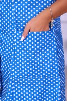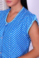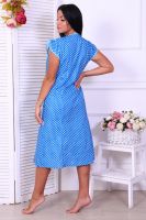 Халат женский пошит из ткани - бязь. Спинка и полочка с рельефами и поэтому фигуре придаёт элегантность. На полочке в рельеф вшит карман. Фигурное крыло вшито в пройму. Горловина изделия и крыло обработано отделочной тканью из бязи. Халат без пояса.
