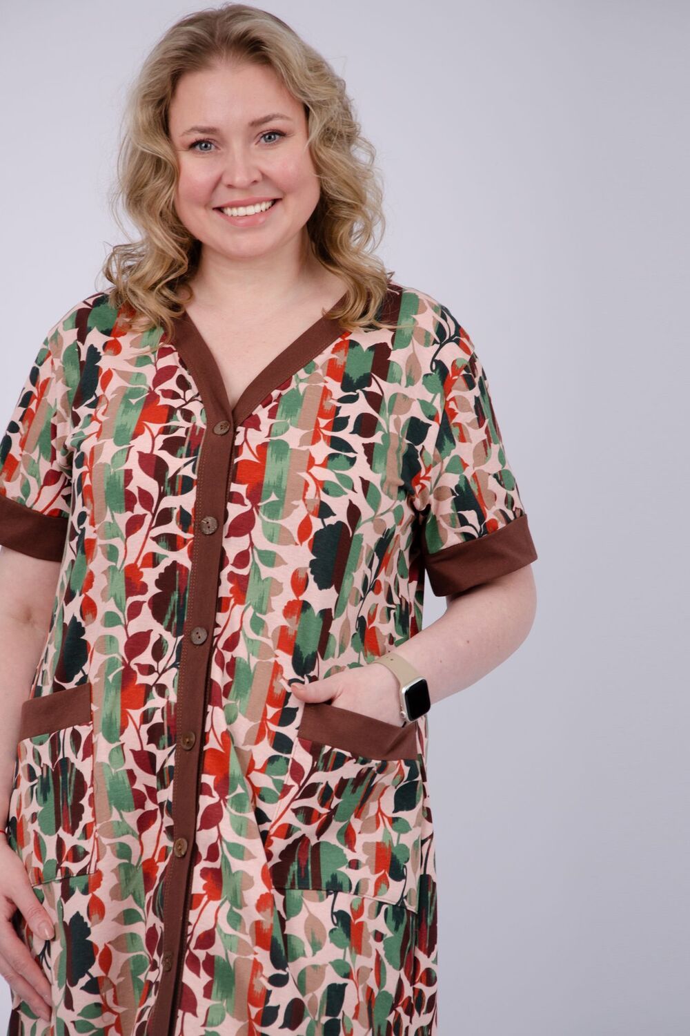 Халат домашний на пуговицах - это идеальный выбор для комфортного и стильного проведения времени дома. Созданный из 100% хлопка, этот халат дает не только мягкость и приятную на ощупь фактуру, но и отличную дышащую способность, обеспечивая максимальное удобство в любое время года. Халат оснащен накладными карманами, что делает его практичным выбором для хранения мелочей в доме. Короткие рукава и отсутствие утеплителя делают его идеальным для теплого климата или использования внутри дома. Вид застежки на пуговицы обеспечивает легкость надевания и снятия, а тип ростовки для высоких позволяет халату идеально сидеть на любой фигуре. Этот халат является отличным выбором для тех, кто ценит комфорт и стиль в домашней одежде. Он подходит как для повседневного использования, так и для специальных случаев, например, в роддоме, где необходима удобная и практичная одежда.
