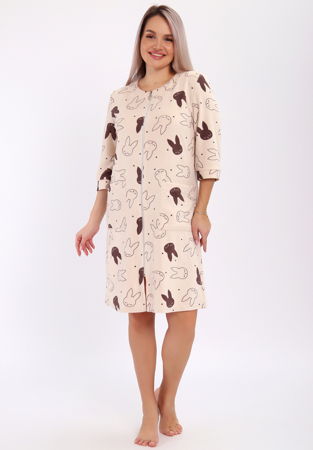 Халат махровый на молнии и двумя карманами.
