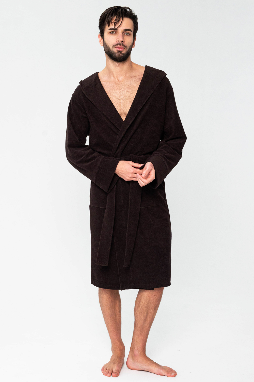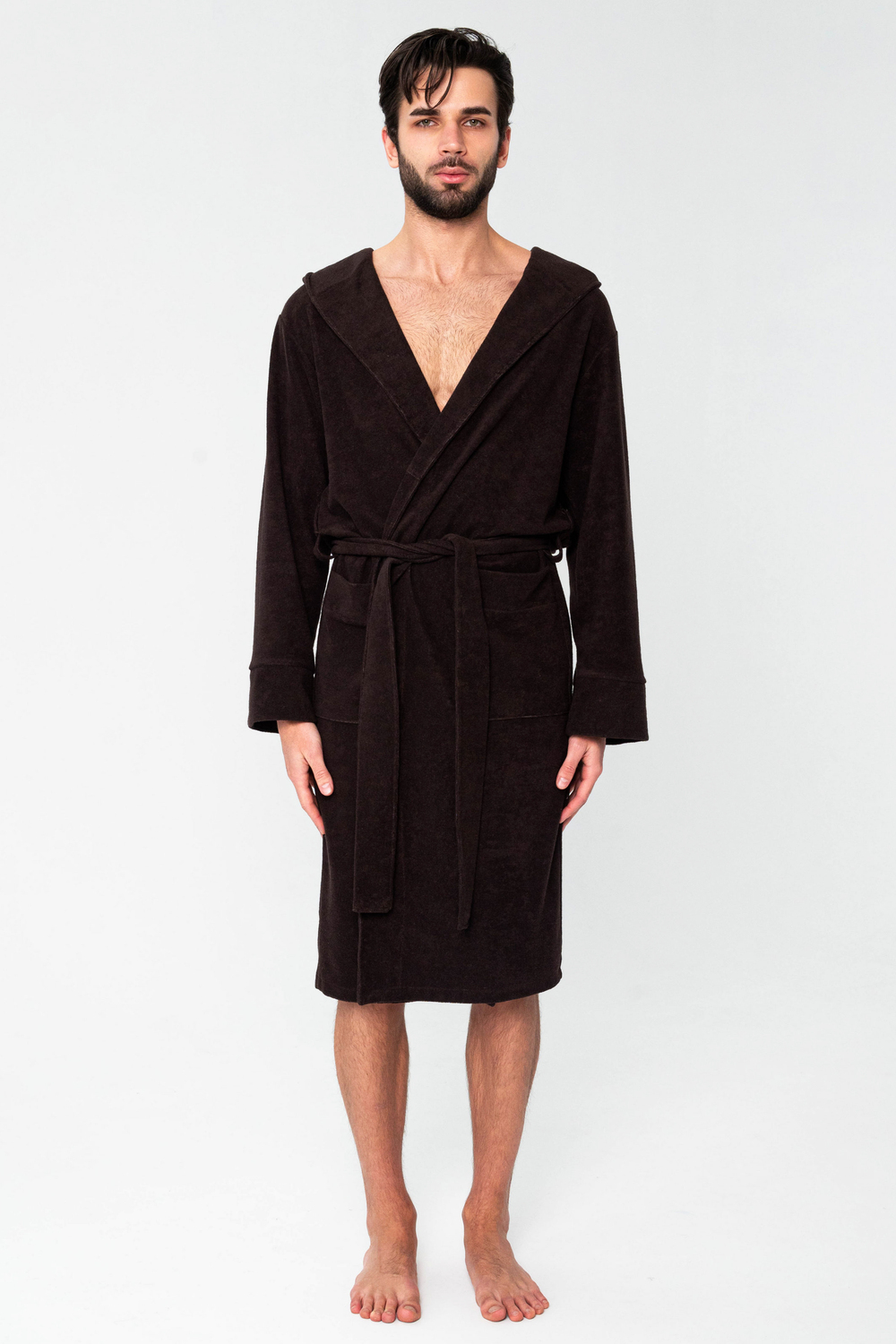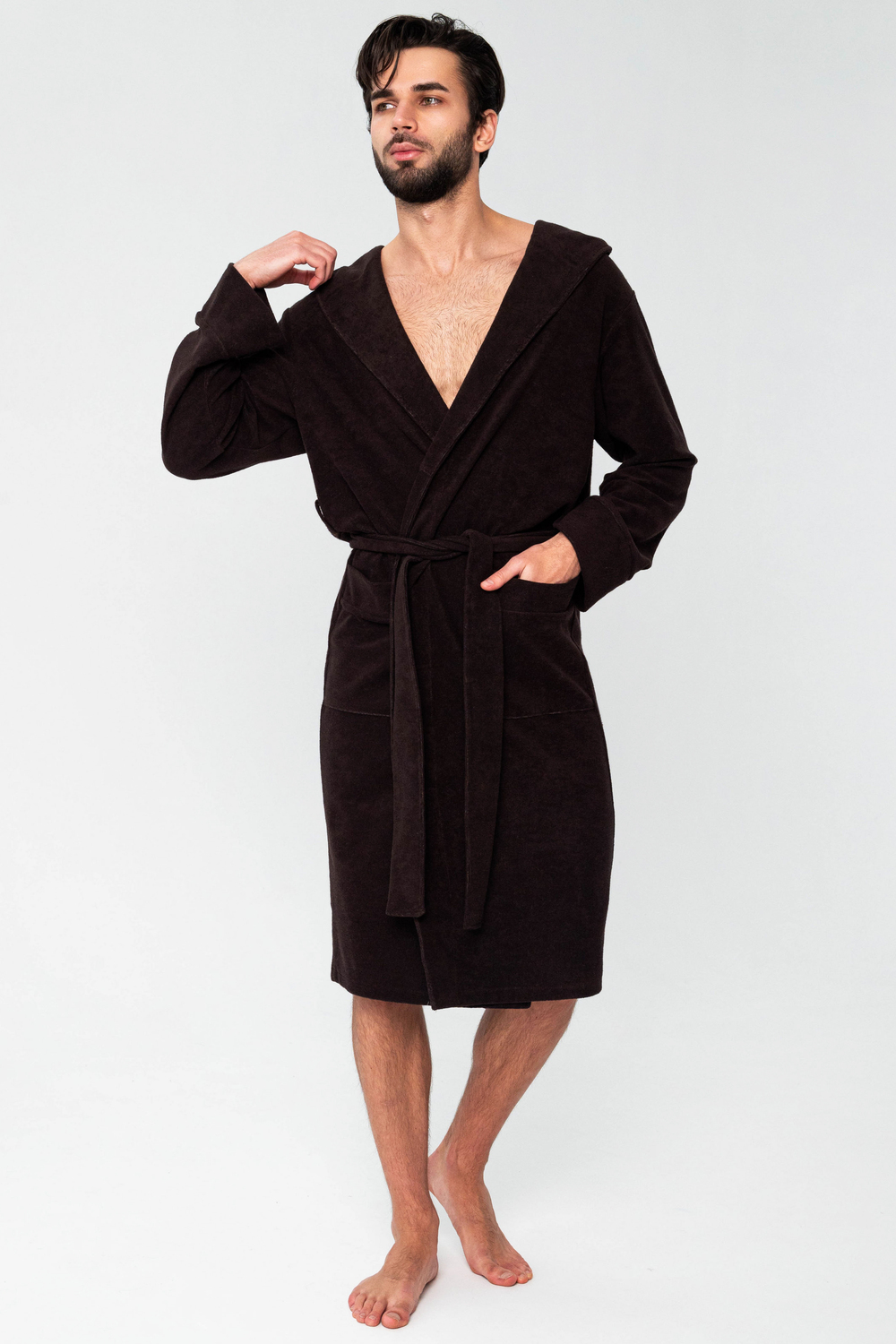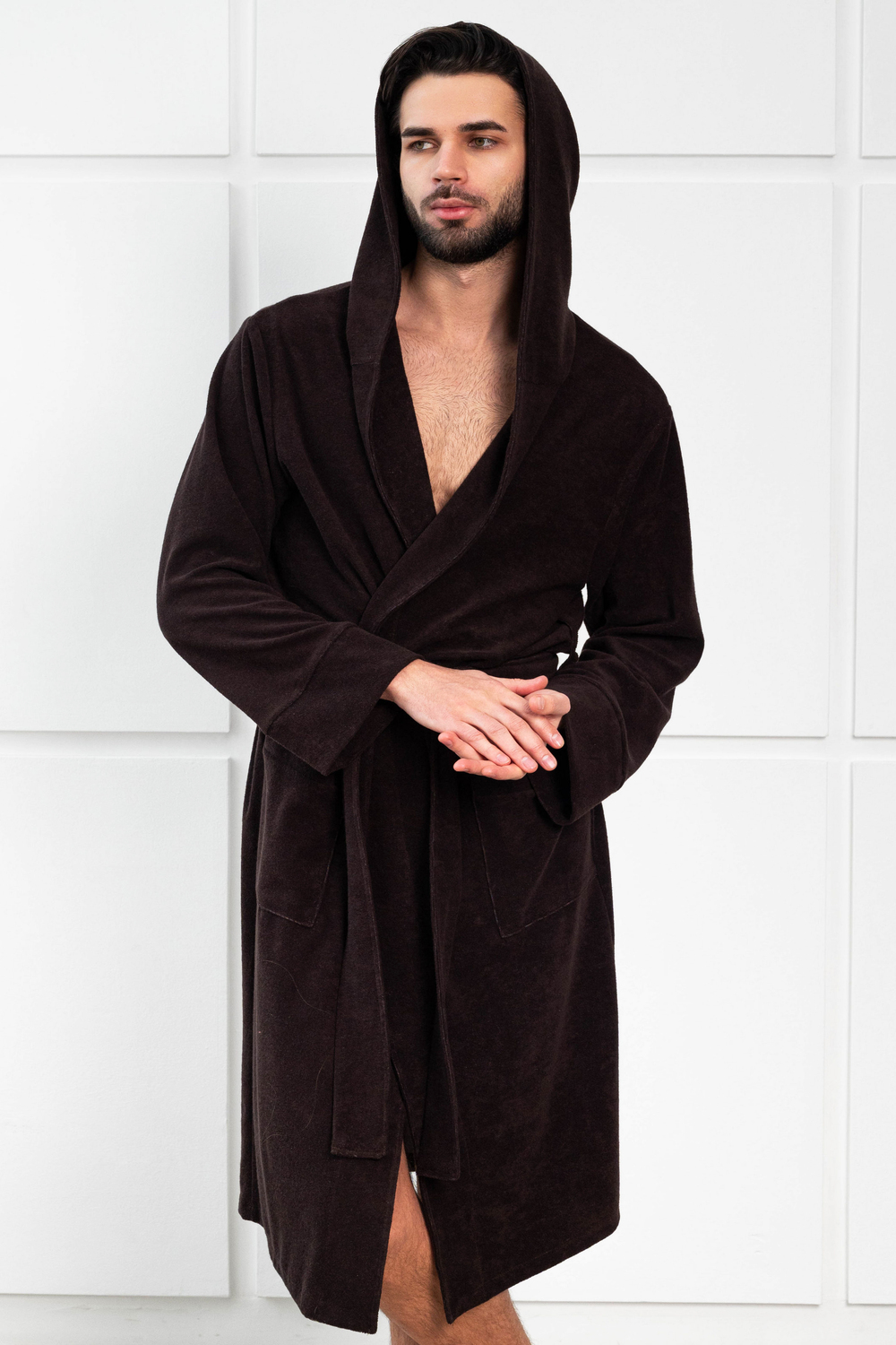 Халат мужской из облегченной махры (плотность 220грамм). Халат на запах с поясом. Карманы накладные, рукав манжет, шлевка 2 уровня.