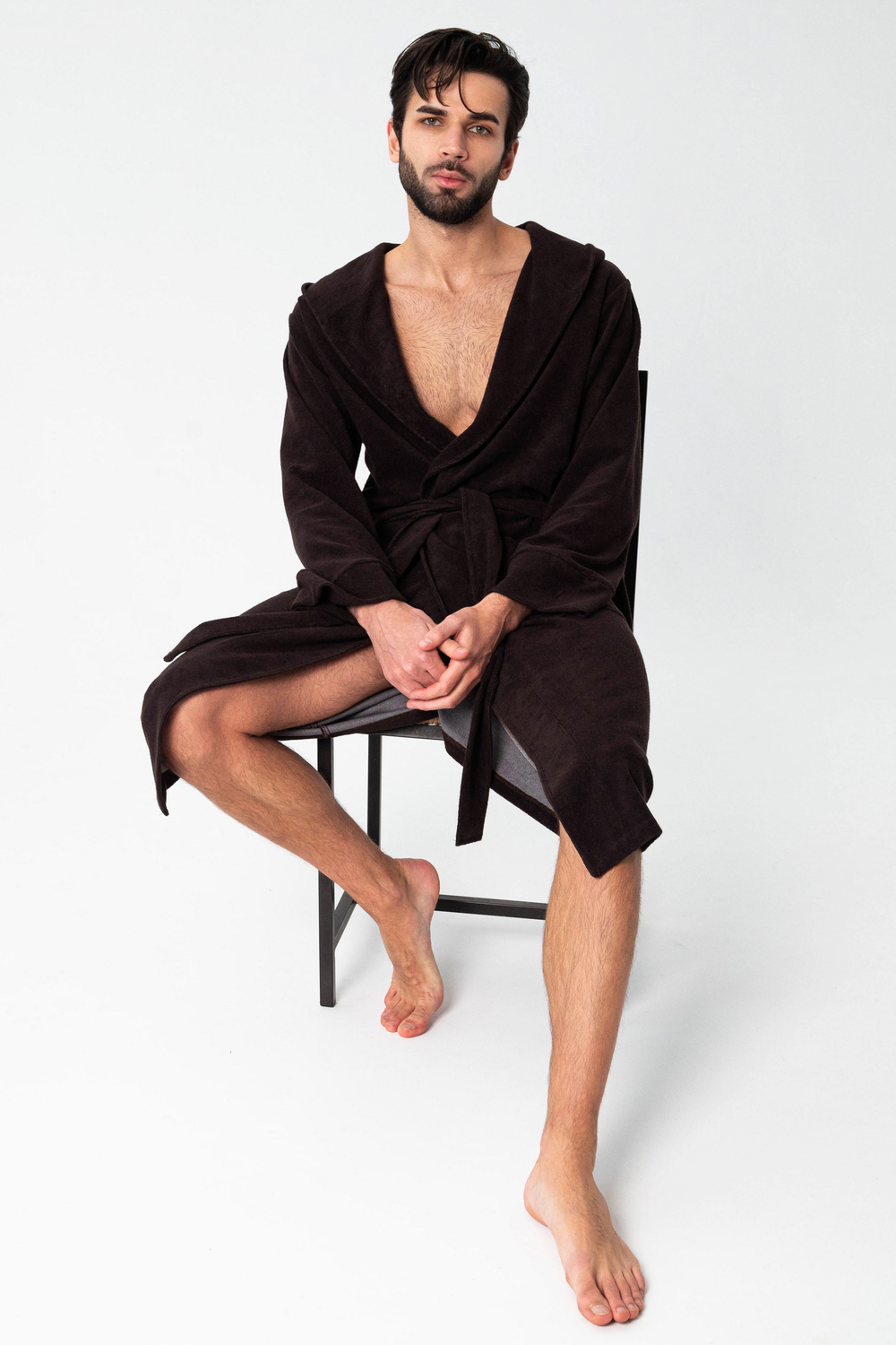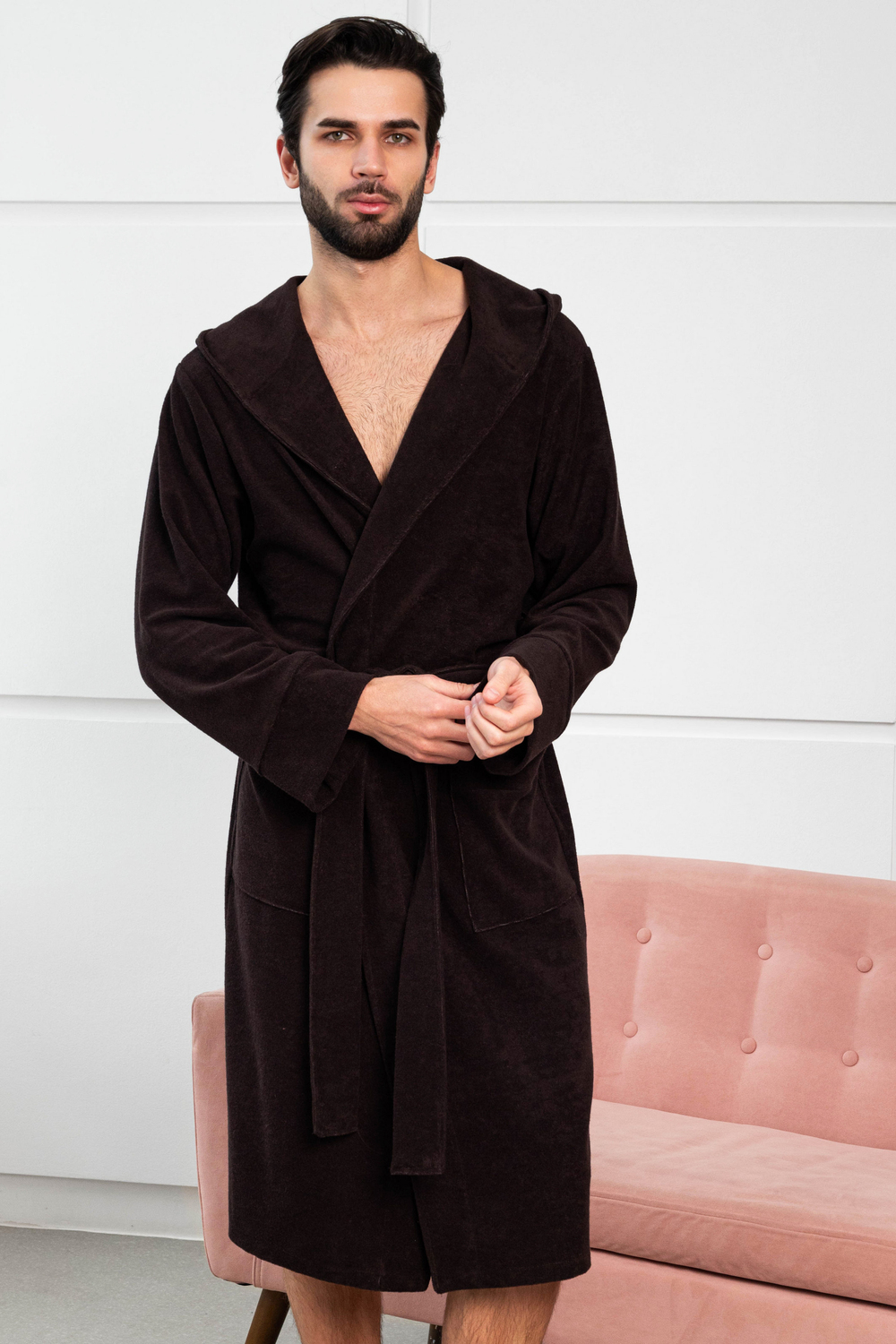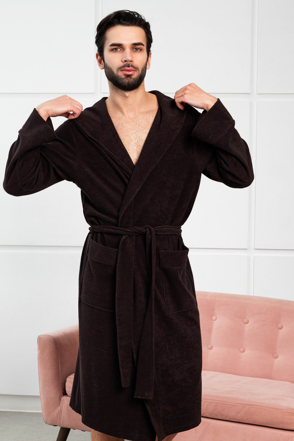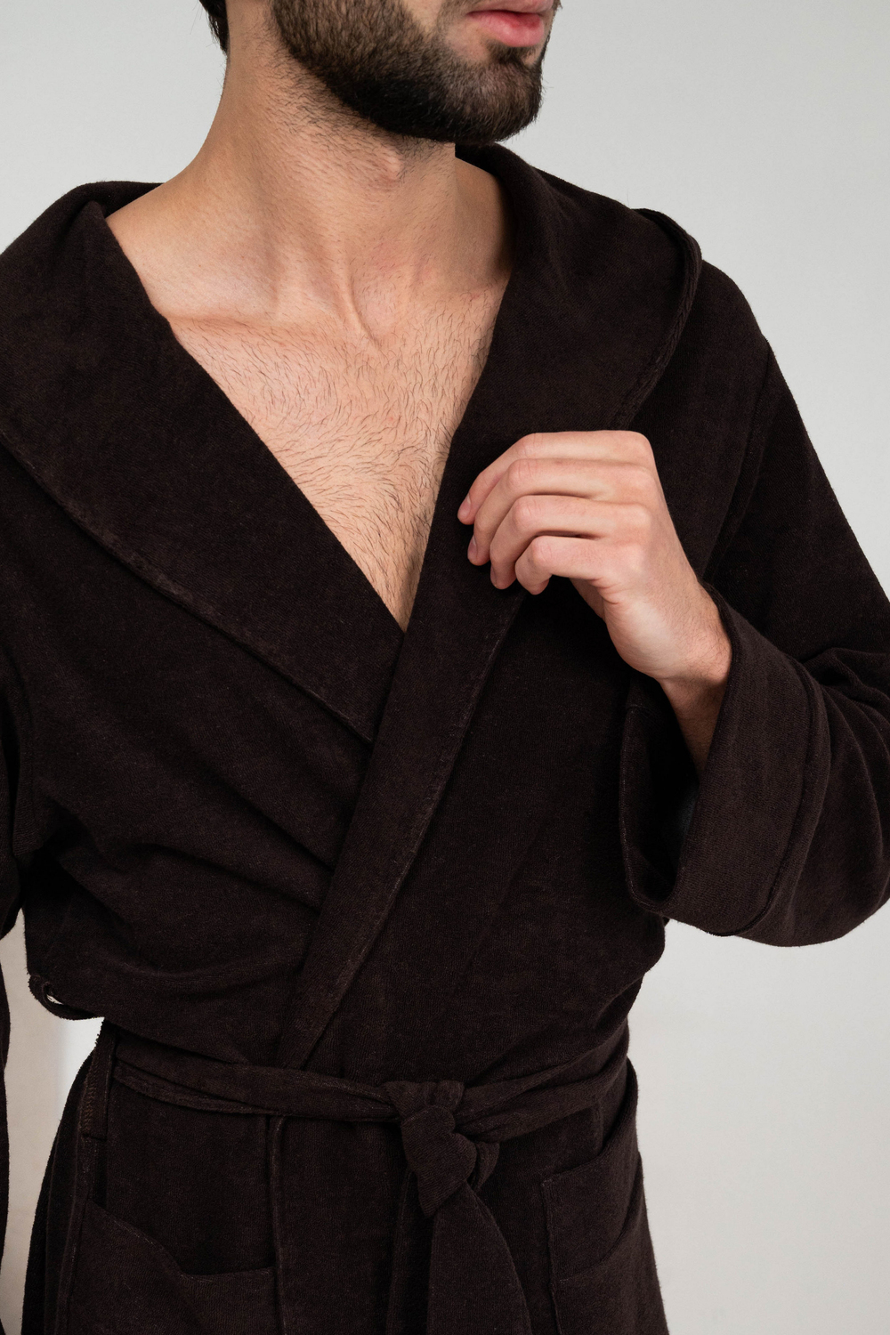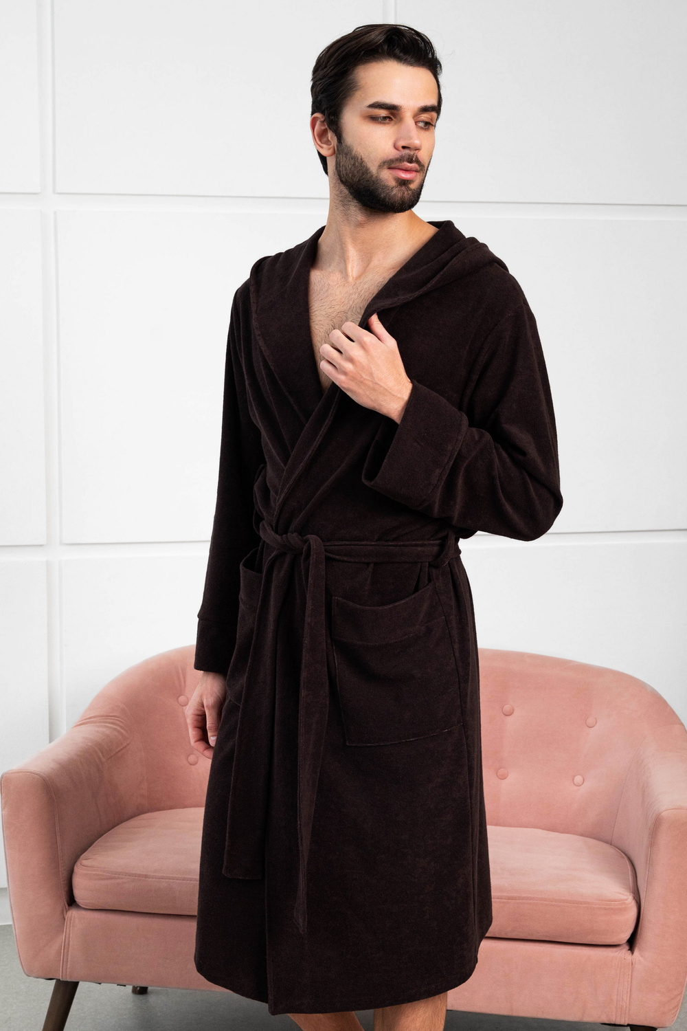 Халат мужской из облегченной махры (плотность 220грамм). Халат на запах с поясом. Карманы накладные, рукав манжет, шлевка 2 уровня.