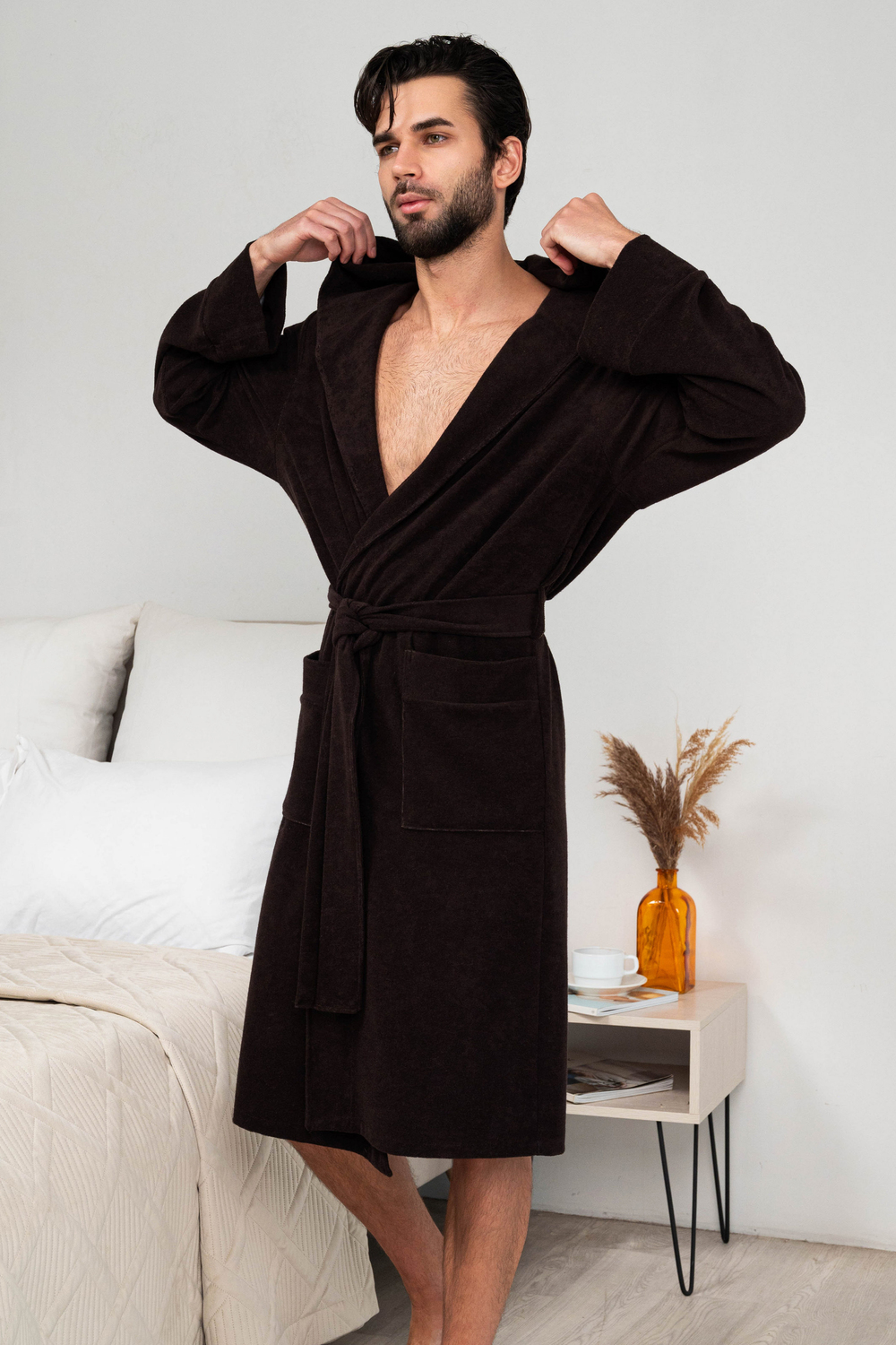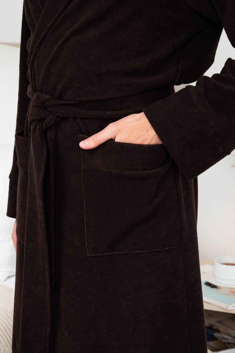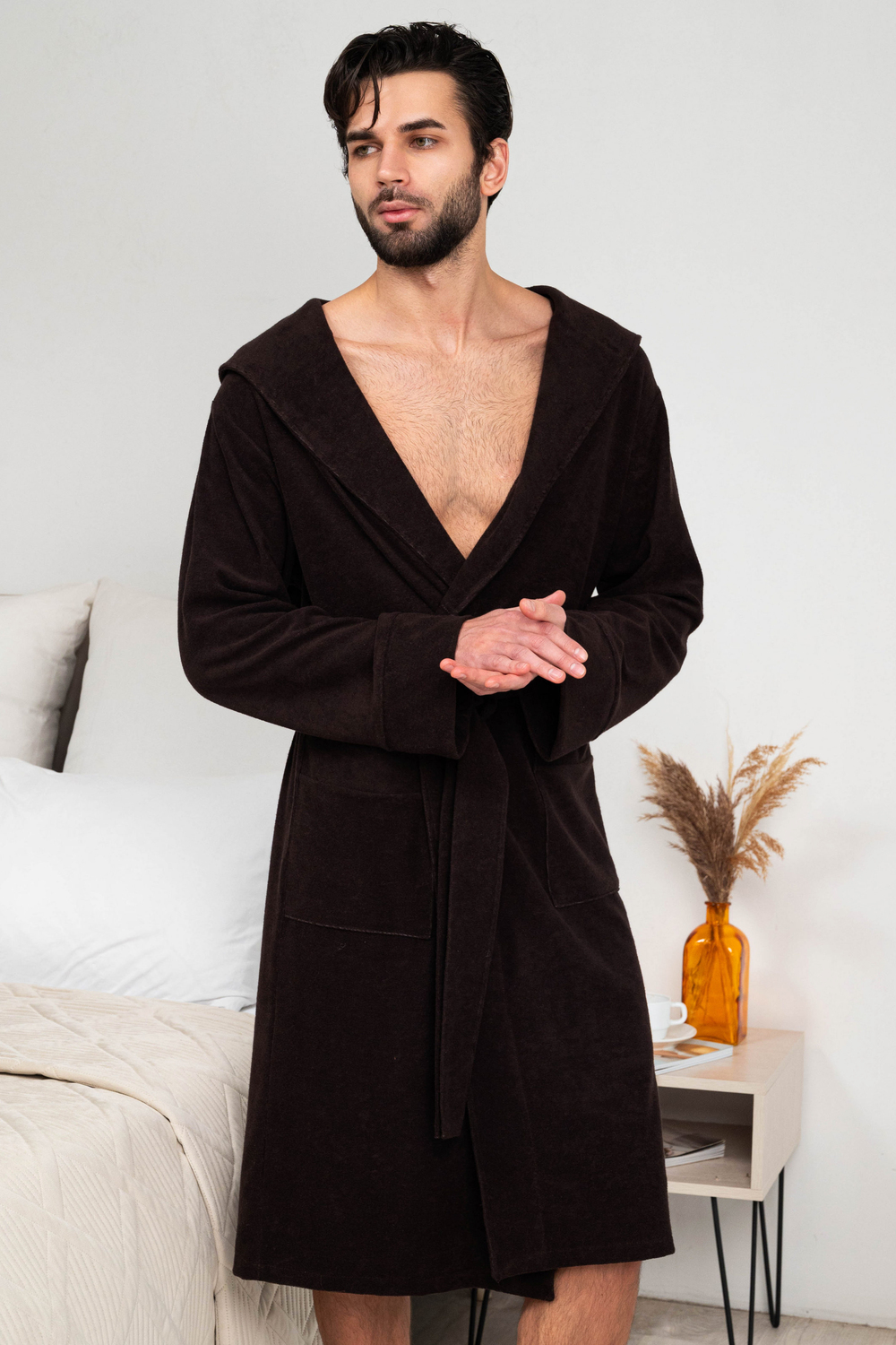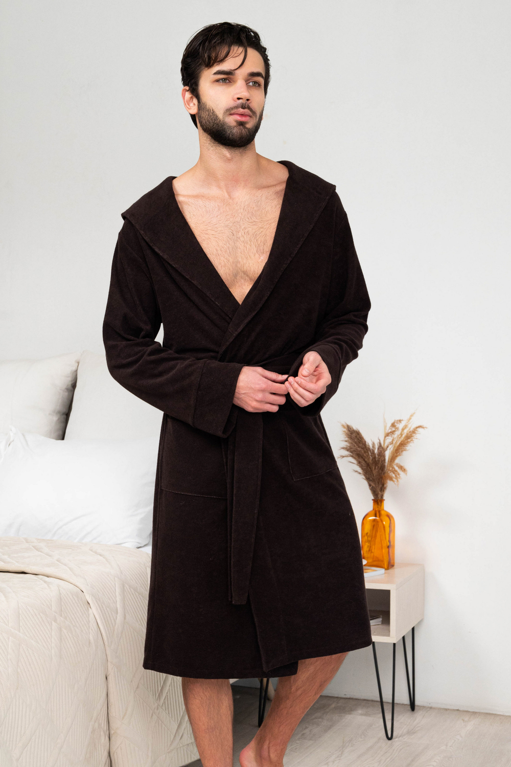 Халат мужской из облегченной махры (плотность 220грамм). Халат на запах с поясом. Карманы накладные, рукав манжет, шлевка 2 уровня.
