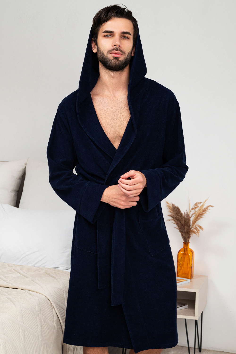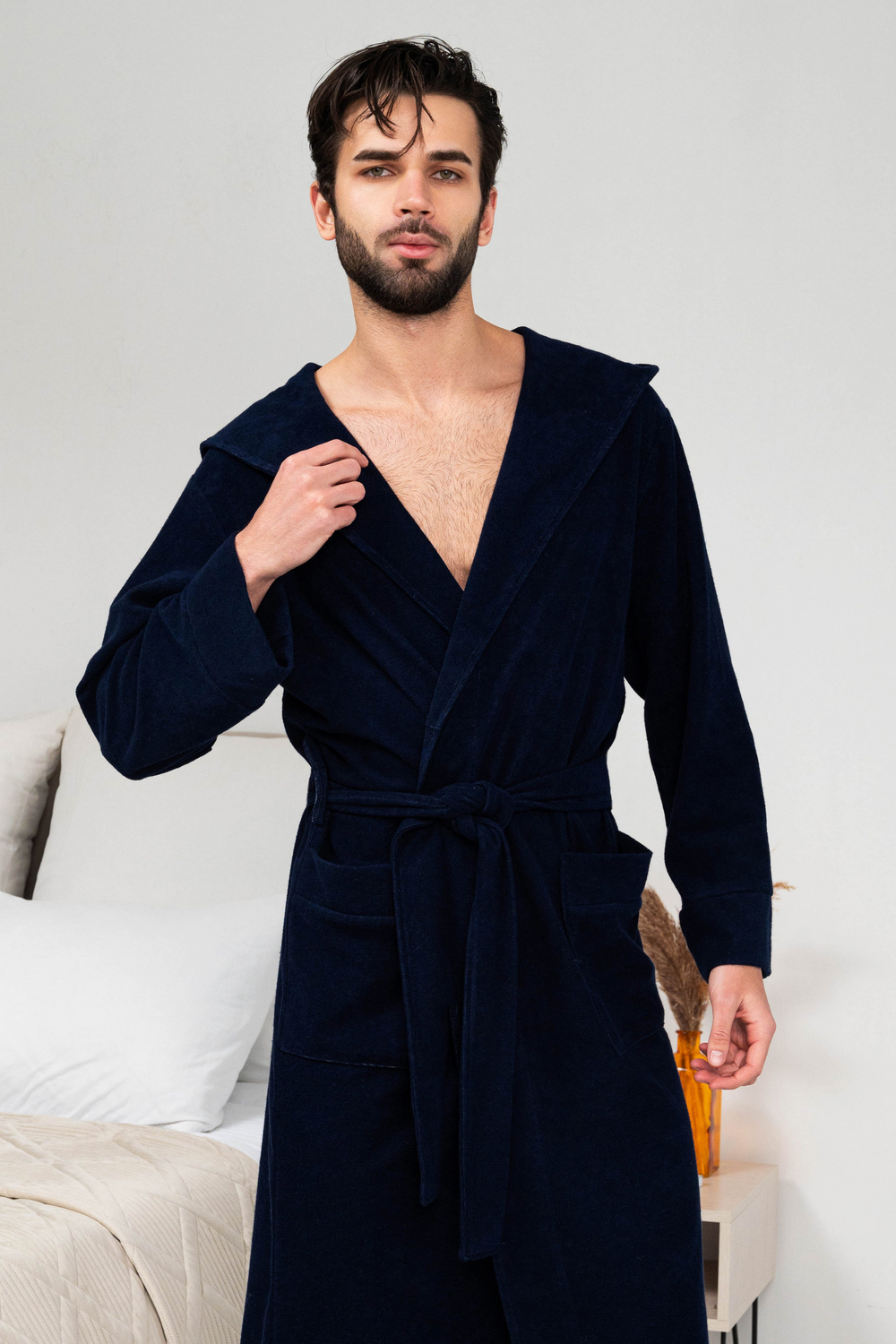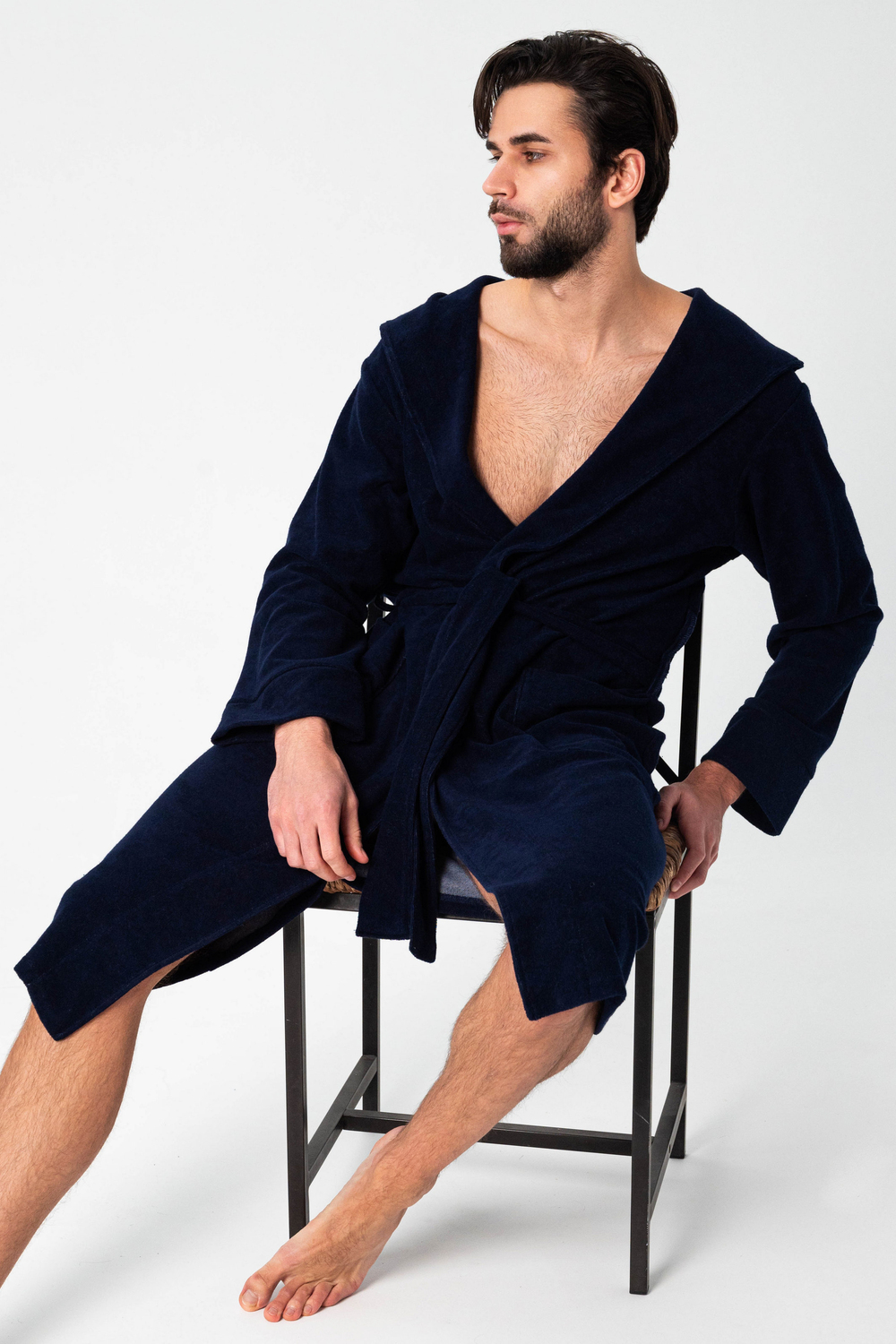 Халат мужской из облегченной махры (плотность 220грамм). Халат на запах с поясом. Карманы накладные, рукав манжет, шлевка 2 уровня.