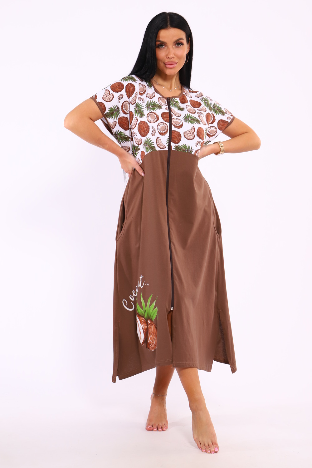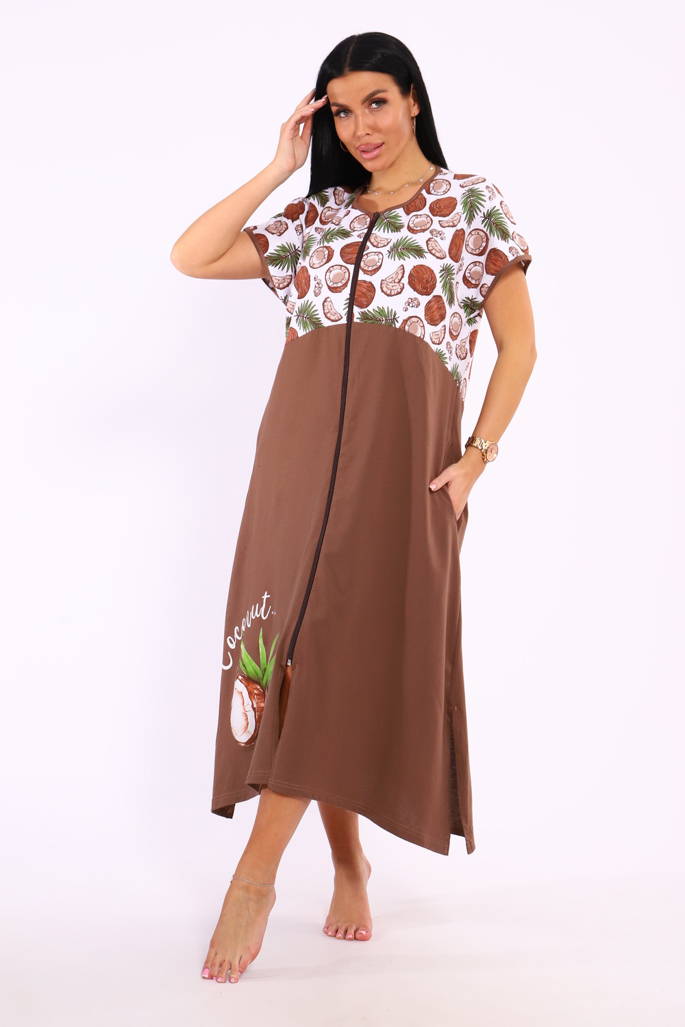 Халат женский домашний из хлопка - полюбившаяся модель среди наших покупателей. Отличный вариант подарка. Наша одежда для дома имеет большие размеры. Данная модель представлена до 66 размера. Это значит, что халатик подойдет так же, как женская одежда для беременных и кормящих и в роддом. Халат женский на пуговицах удобен в использовании больше, чем халат на запах. Он не будет расстегиваться при домашних хлопотах. Халат женский легкий ниже колена. При этом отлично подойдет для высоких и низких женщин. Халат женский домашний больших размеров имеет удобные карманы. Халат женский с коротким рукавом можно носить дома, в бане или спа. Красивый халат идеально подойдет для женщин, девушек и девочки. Каждая обладательница мягкого домашнего халата почувствует комфорт и заботу! Хорошо будет смотреться с сорочкой. Нарядное, трикотажное платье-халат с поясом для подчеркивания талии. Летом можно носить как пляжный вариант. Халат банный подходит даже для чувствительной кожи. 100% хлопок позволяет коже дышать. Халат женский длинный отличный вариант на любое время года. Послужит прекрасным подарком для любимой жены, сестры, подруги на любой праздник. Отличная альтернатива халату вафельному, байковый-фланелевый, велюр. Производство Россия, Иваново.