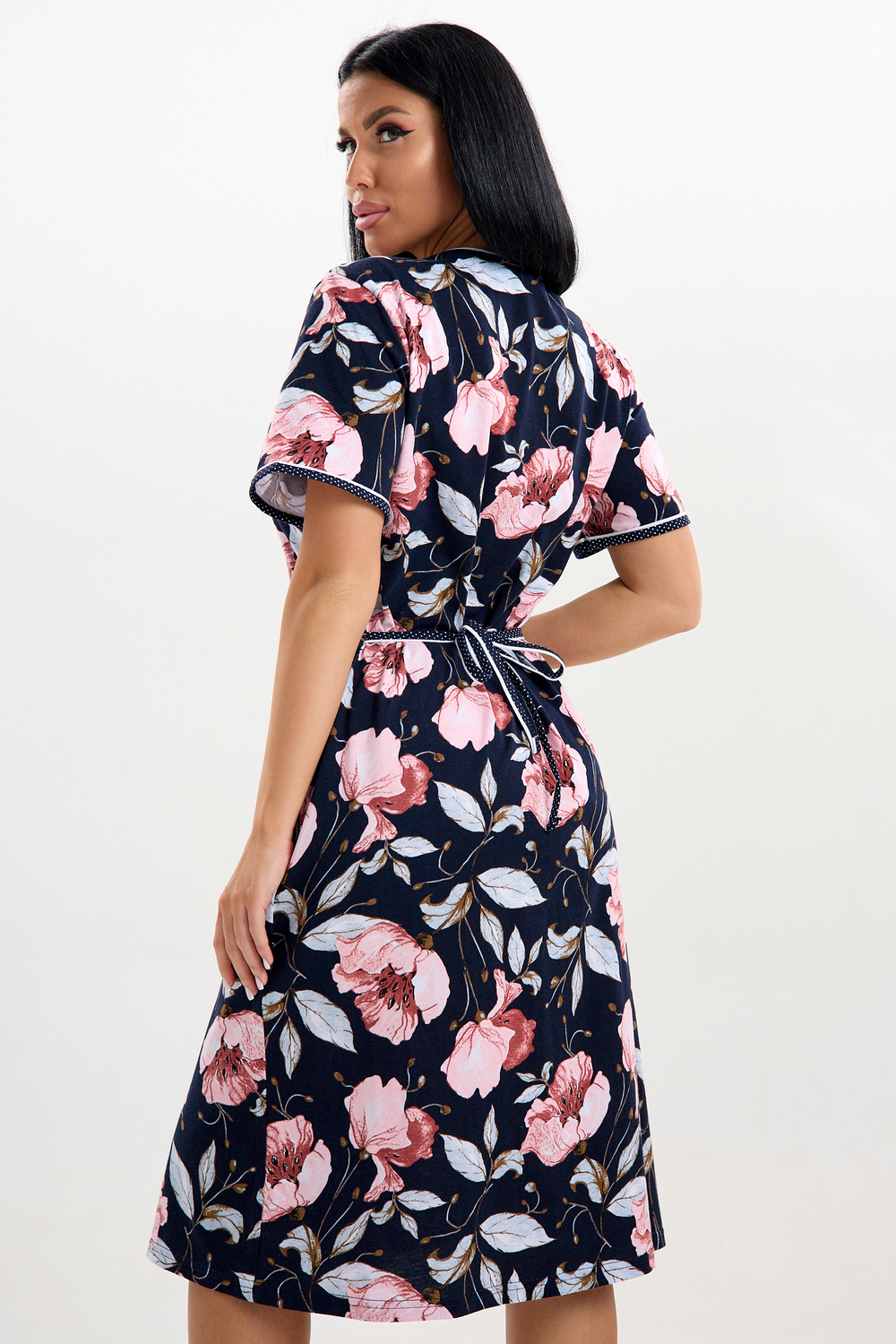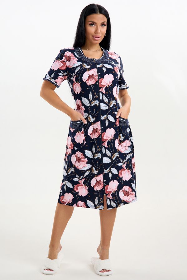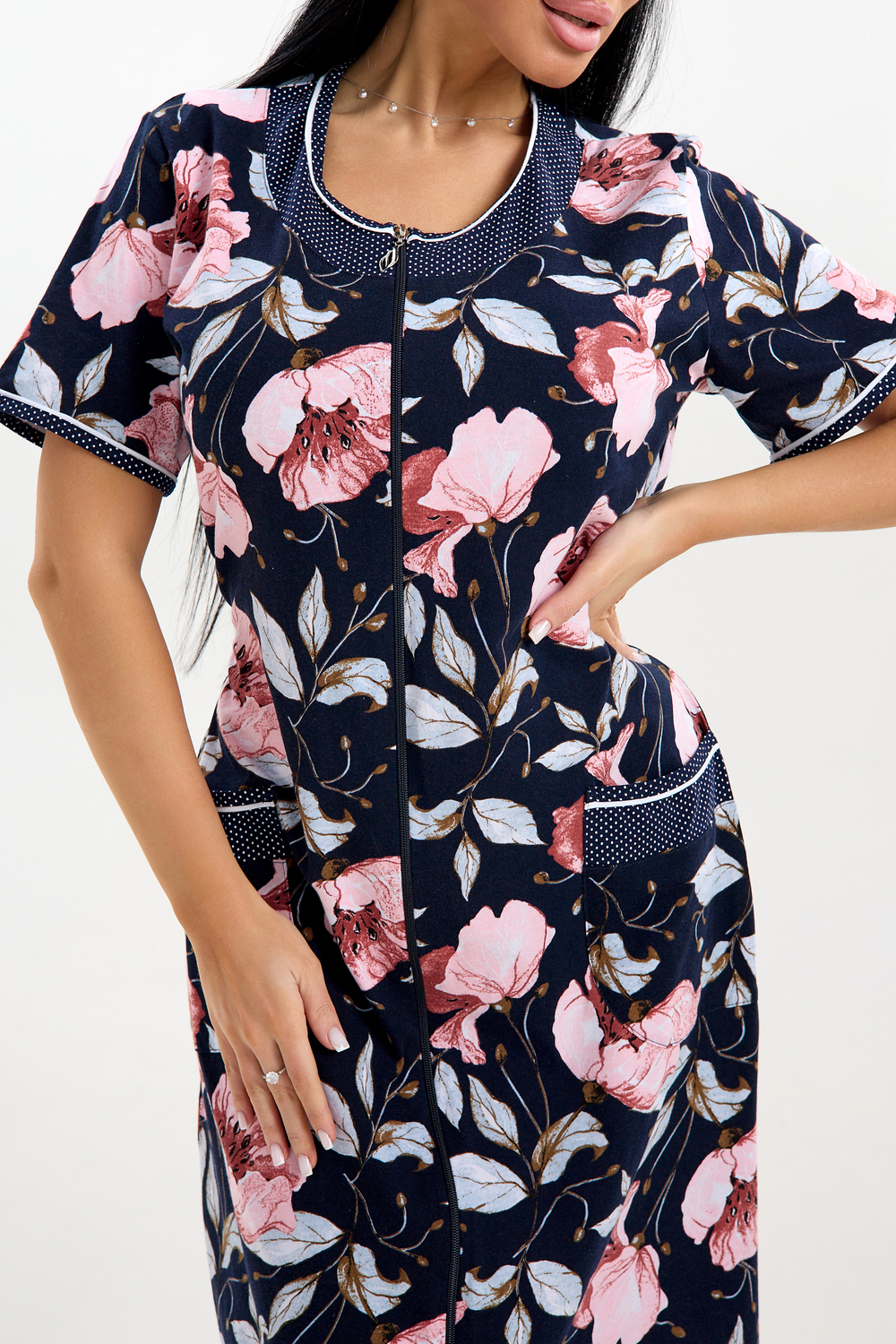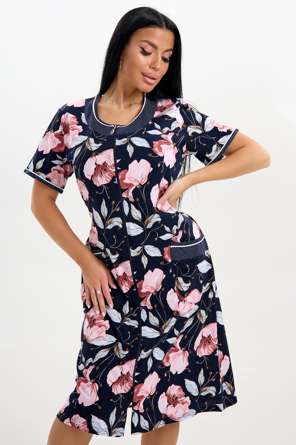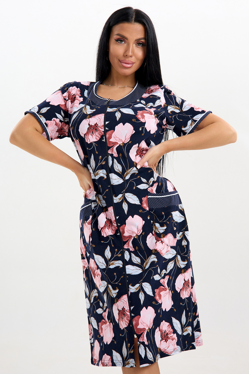 Этот халат станет отличным вариантом для домашнего использования. Он выполнен из мягкого трикотажа на основе хлопка, что обеспечивает комфорт в любое время года. Такой халатик идеально подходит для женщин, которые ценят уют и стиль в одежде. Модель предназначена для домашних дел, подойдет как для вечера, так и для утренних рутин. Изделие отличается тем, что регулируется хлястиком, что позволяет адаптировать любимый стиль к индивидуальным предпочтениям. Халаты подходят беременным и женщинам после родов за счет свободного кроя и удобства. Длинный вариант обеспечит тепло в прохладные дни, а короткий рукав добавит легкости в летние сезоны. Модель отлично будет смотреться на женщинах больших размеров, предоставляя разнообразные возможности стиля.